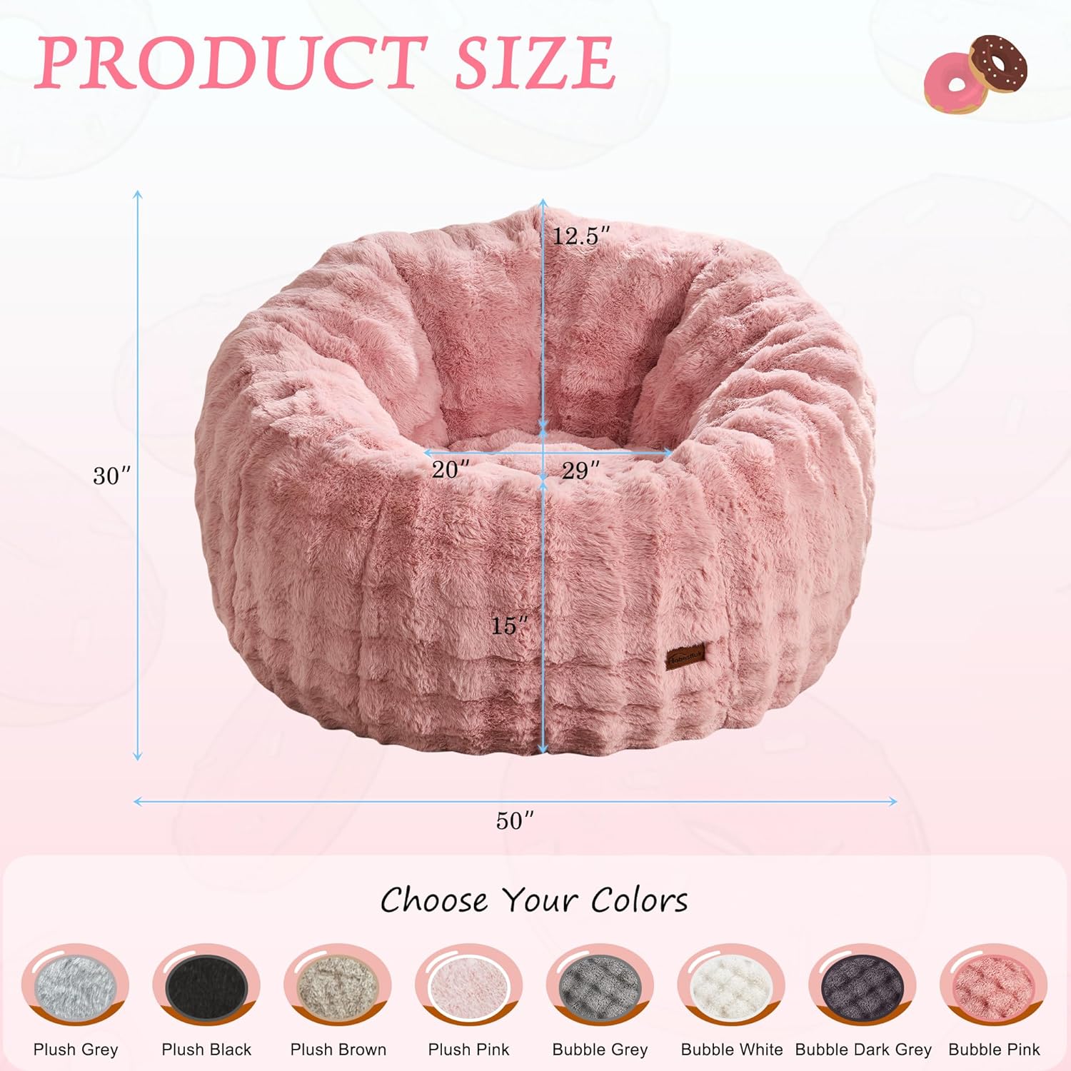 Hobestluk Bean Bag Chair Oversized Bean Bag Chair for Adults Donut-Shaped Large Bean Bag with Spacious Design for Living Room Bedroom or Reading Nook (Bubble Pink)