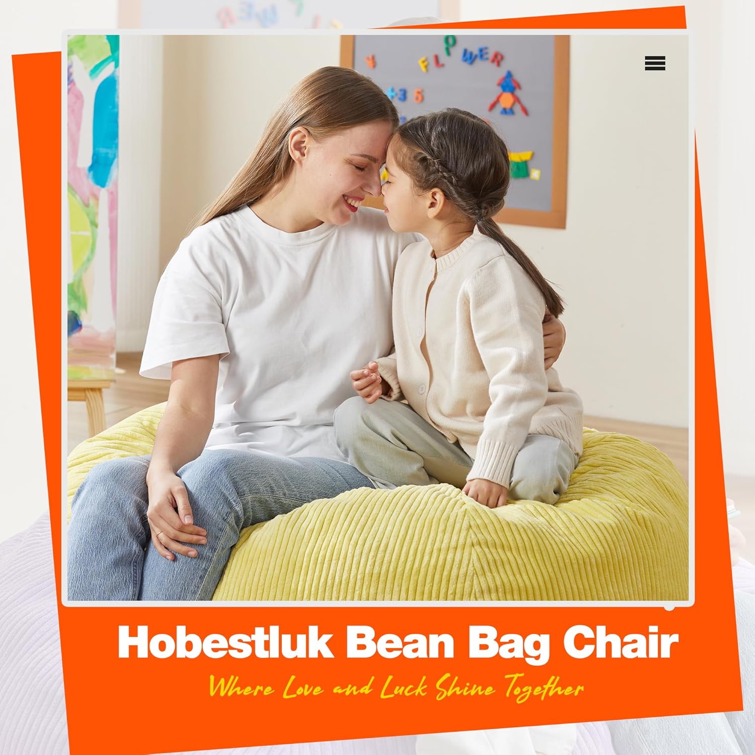 Hobestluk 4.5FT Bean Bag Chair Giant Bean Bag Chair with Filler Included Adult Bean Bag Chairs with Removable Cover for Bedroom Living Room - (Jumbo, Yellow)