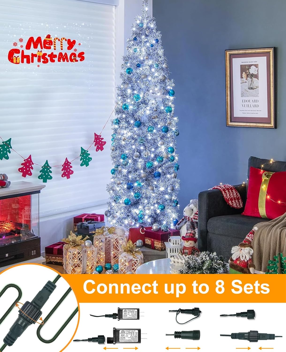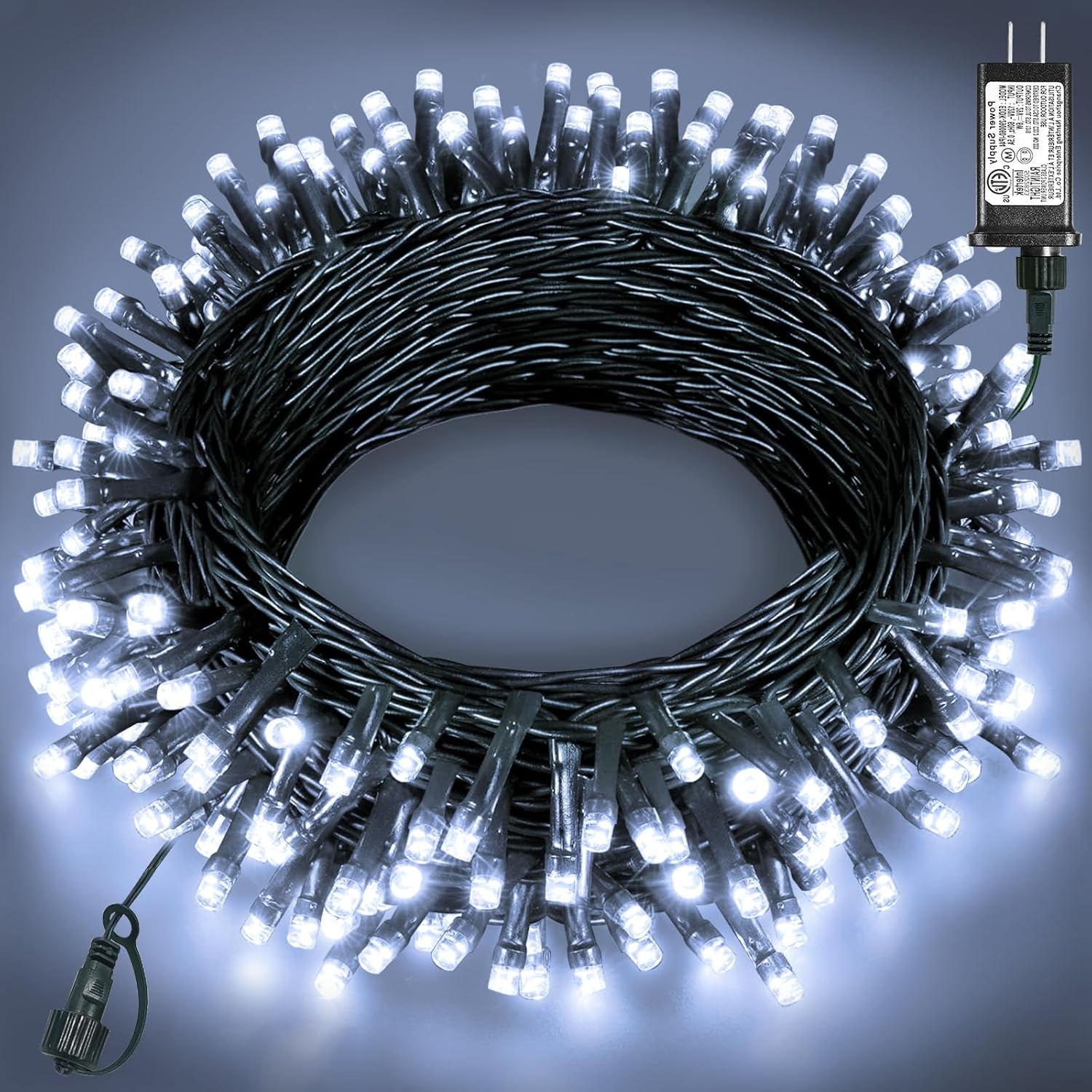 40FT 120 LED Christmas Lights Outdoor, Green Wire Christmas Tree Lights with 8 Modes & Waterproof, Connectable Plug in String Light for Indoor Bedroom Yard Party Wedding Decorations, White