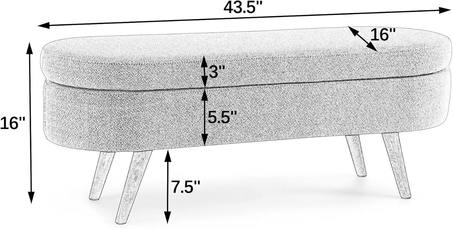 Oval Storage Bench 43.5" Linen Fabric Upholstered Entryway Bench with Solid Wood Legs Ottoman Bench Indoor Bench for Living Room/Bedroom/End of Bed/Entryway (Blue)