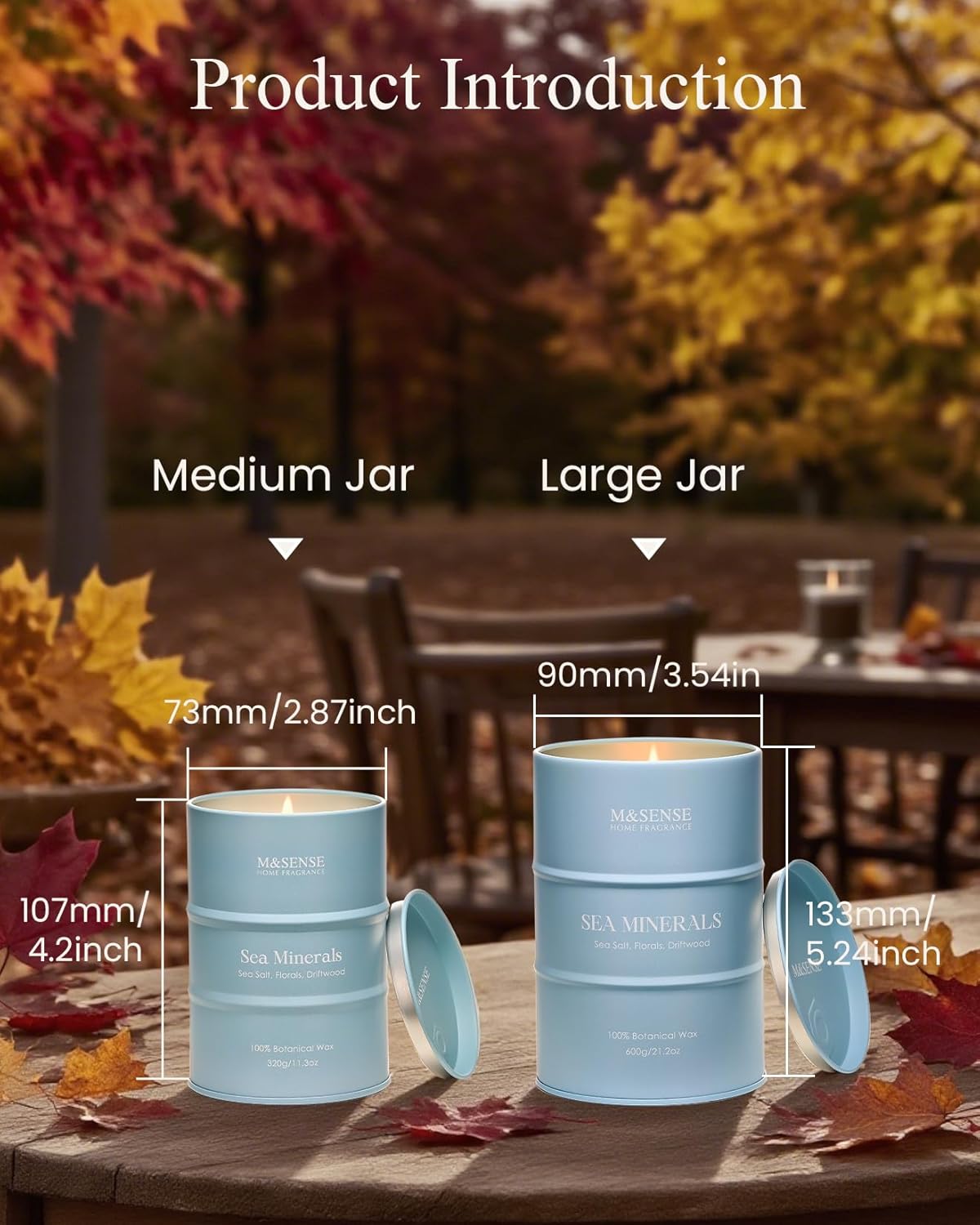 - 💚 Sustainable Material - M&SENSE candles are all crafted with the finest and most natural ingredients. Using high-end vegetable wax and unbleached cotton wicks in a reusable and recyclable tin. Packaged in recycled honeycomb paper and cardboard box for a more sustainable future.