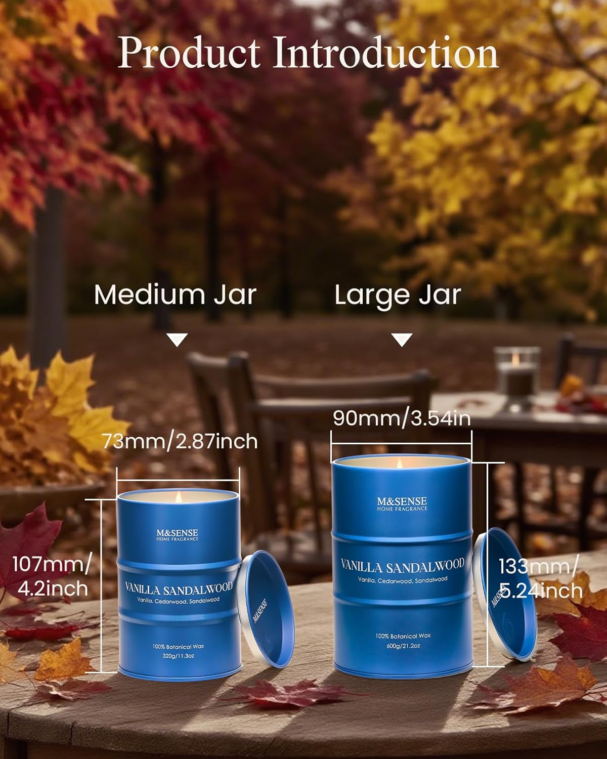 M&SENSE Vanilla Sandalwood Scented Candles Natural Non Toxic, Aromatherapy Candle for Stress Relief Meditation Relaxing, Housewarming Gifts for Women Men, 11.3oz 70 Hour Long Burning