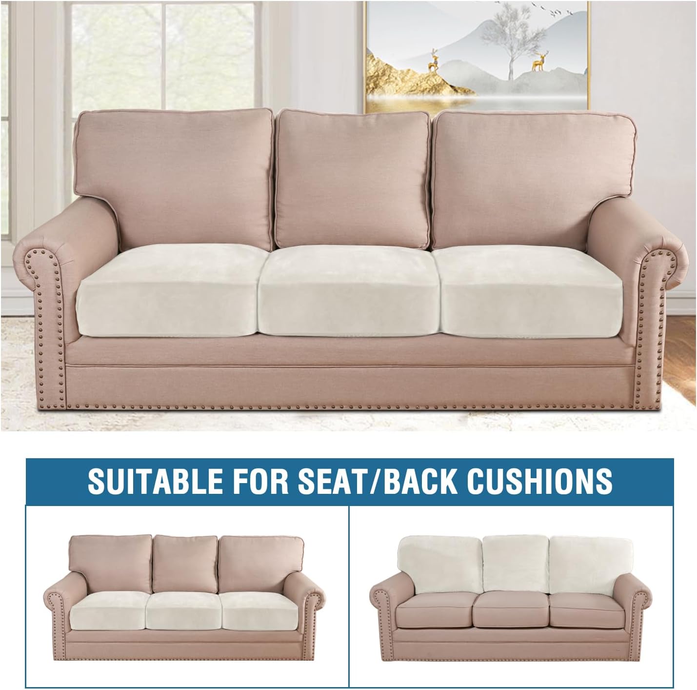 - STAY IN PLACE: Featuring non-skid thick elastic bottom, our cushion slipcover can stay tight with no snag, no wrinkling, shifting or slipping on both leather and cloth sofa. Check the installation guide carefully, it can be finished within 3 minutes by one person. It is very easy to put on and take down. (Installation Instructions Included)