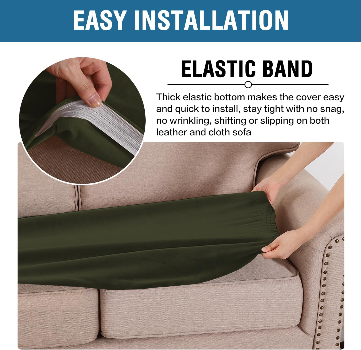 - STAY IN PLACE: Featuring non-skid thick elastic bottom, our cushion slipcover can stay tight with no snag, no wrinkling, shifting or slipping on both leather and cloth sofa
