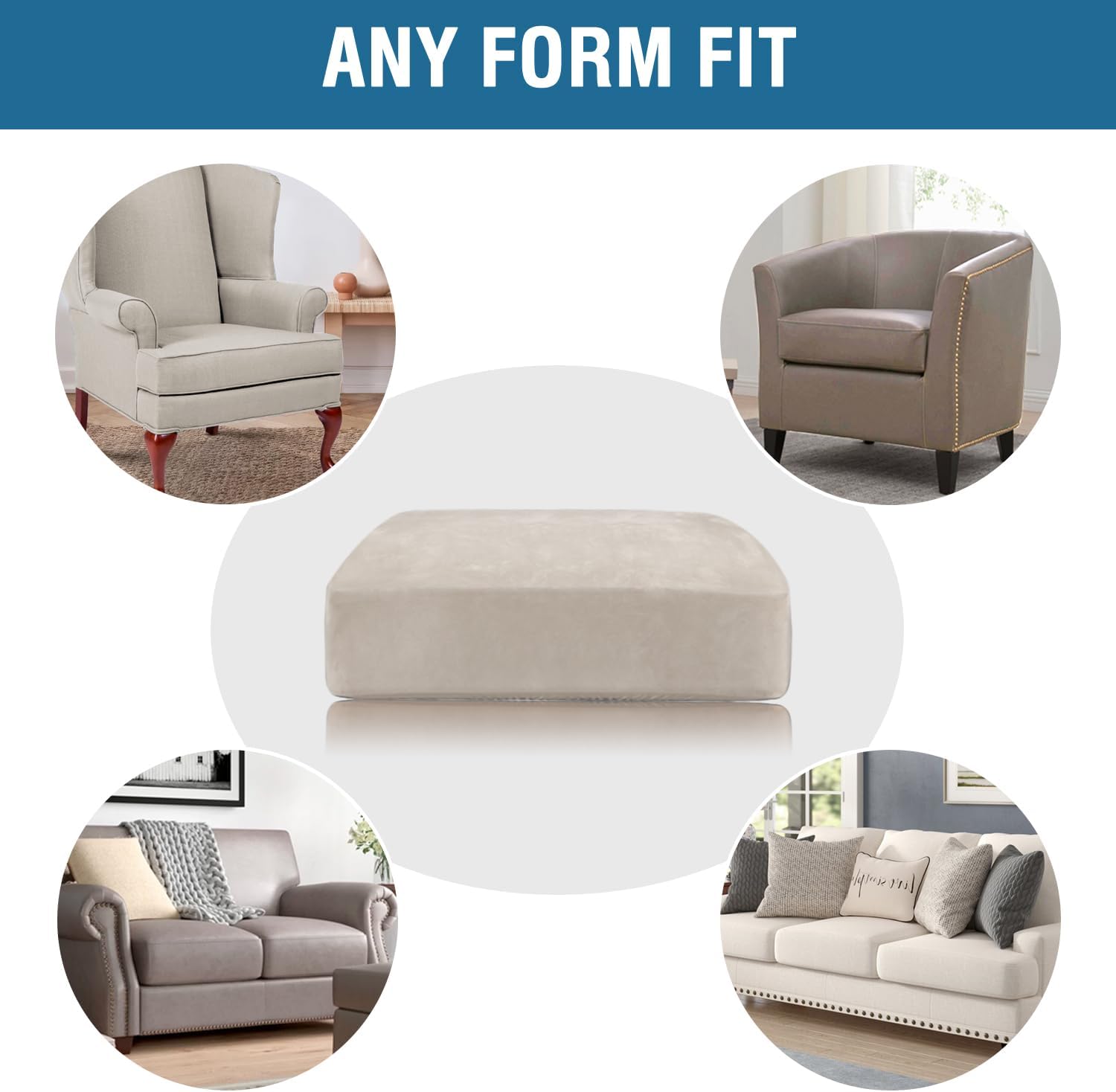 - ANY FORM FIT: Each cushion cover measures: 19.6-29.5" length, 21.6-30.5" width and 2-10" height. It's crafted from a unique extra stretchy fabric, perfect for regular square cushions, T-cushions and also L-cushions, used to cover not only the seat cushions of your sofa, but also the back cushions as long as they can be separated from the sofa