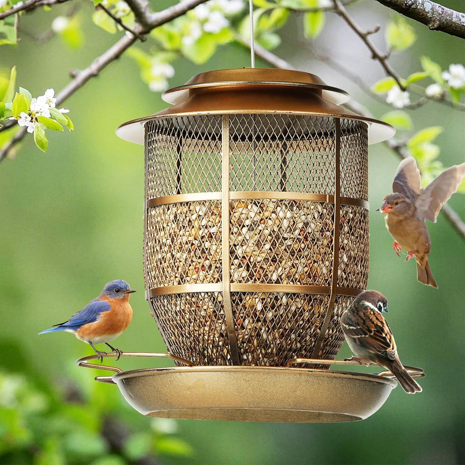 Bird Feeder for Outdoors, Funnel Style Wild Finch Feeders for Outside Hanging Courtyard Bird Watching, Metal Birdfeeder with Lid Fixing Buckle, 3Lbs Capacity