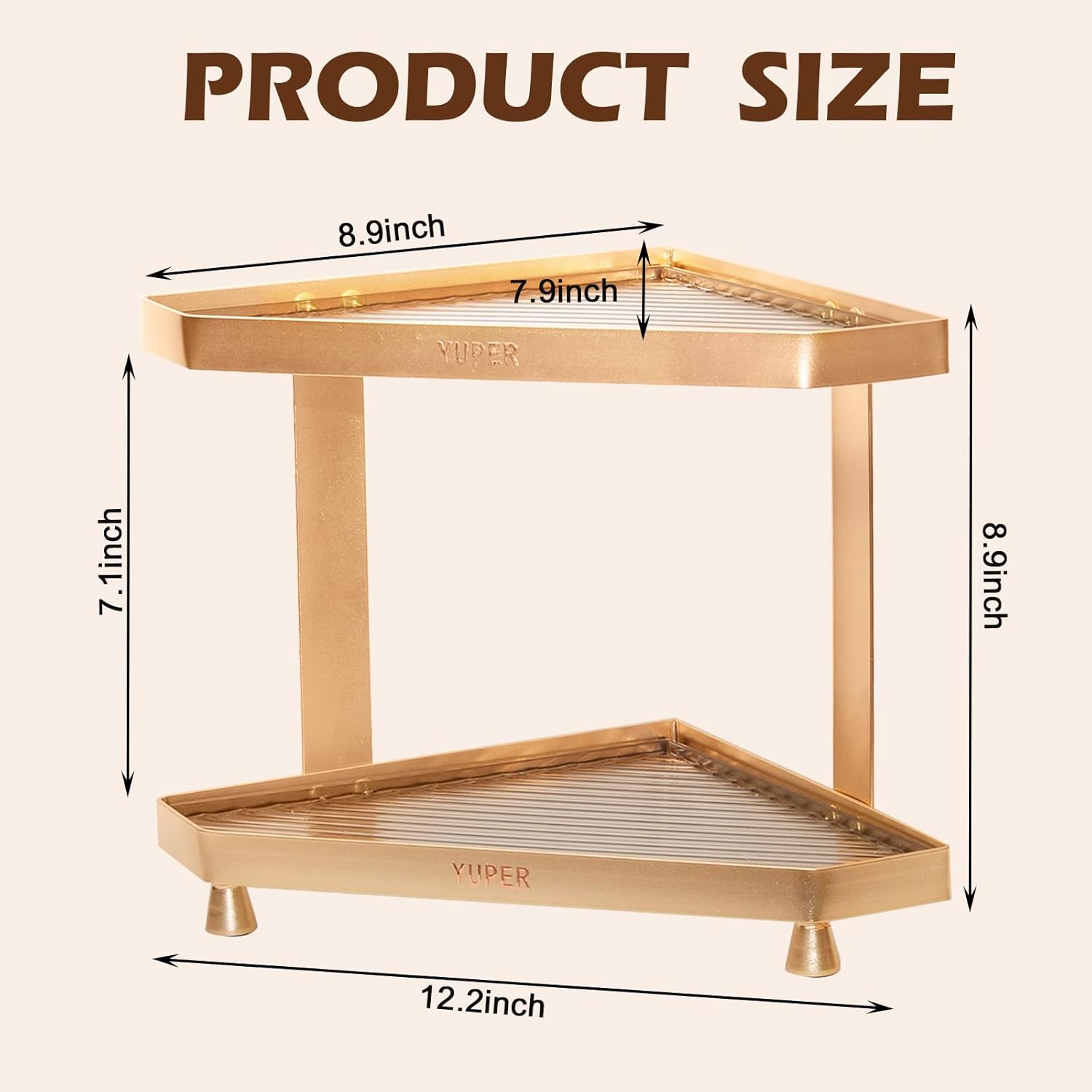 YUPER Bathroom Counter Organizer, 2-Tier Corner Bathroom Organizers and Storage, Makeup Storage Shelf Vanity Tray Perfume Organizer, Bedroom Corner Counter Storage Sink Shelf Gold
