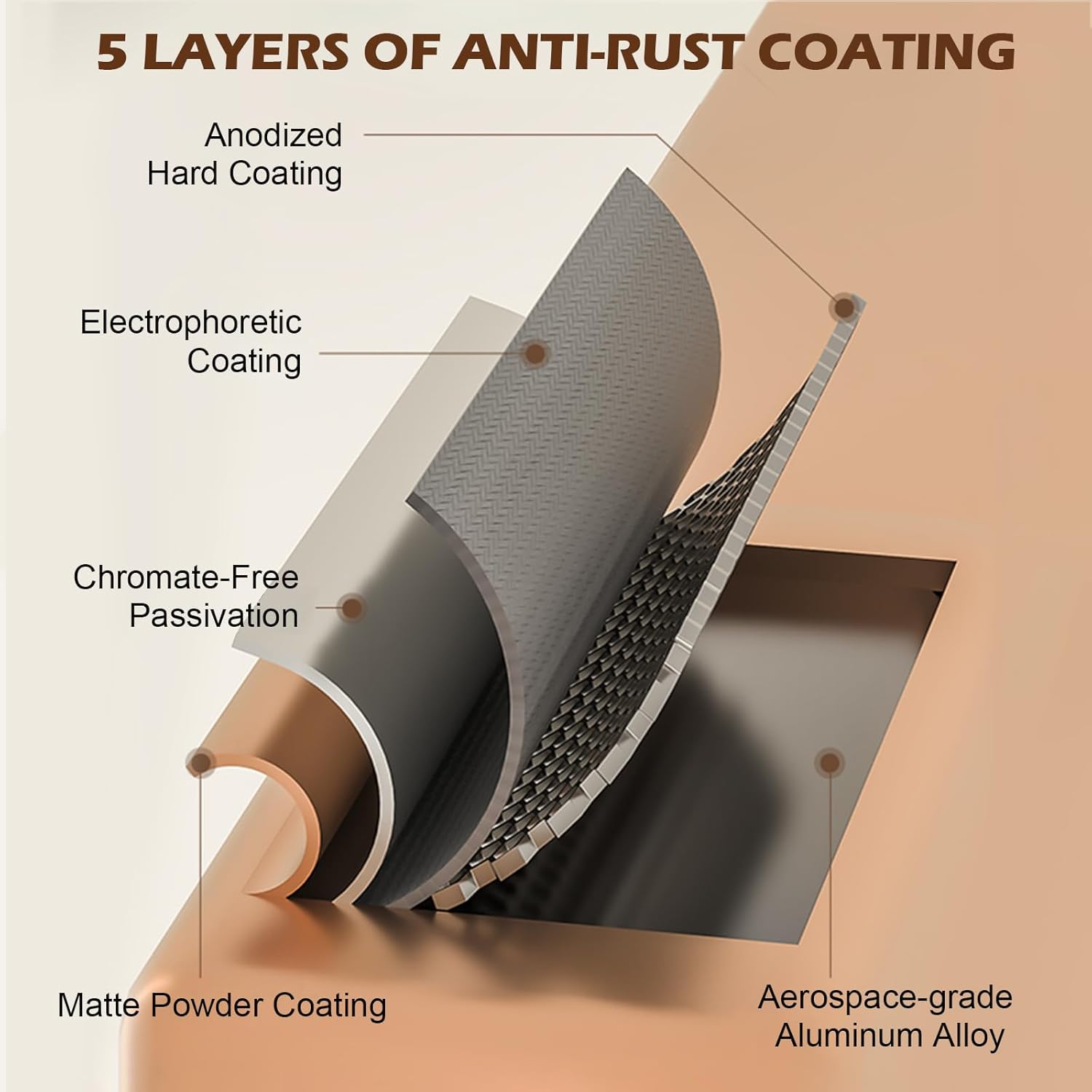 - Easy to Clean - Removable PET Panel ,Simply detach and rinse under water for quick cleaning , Waterproof aluminum frame, Entire shelf can be safely rinsed without rust or damage, Hassle-Free Maintenance, Perfect for humid bathrooms