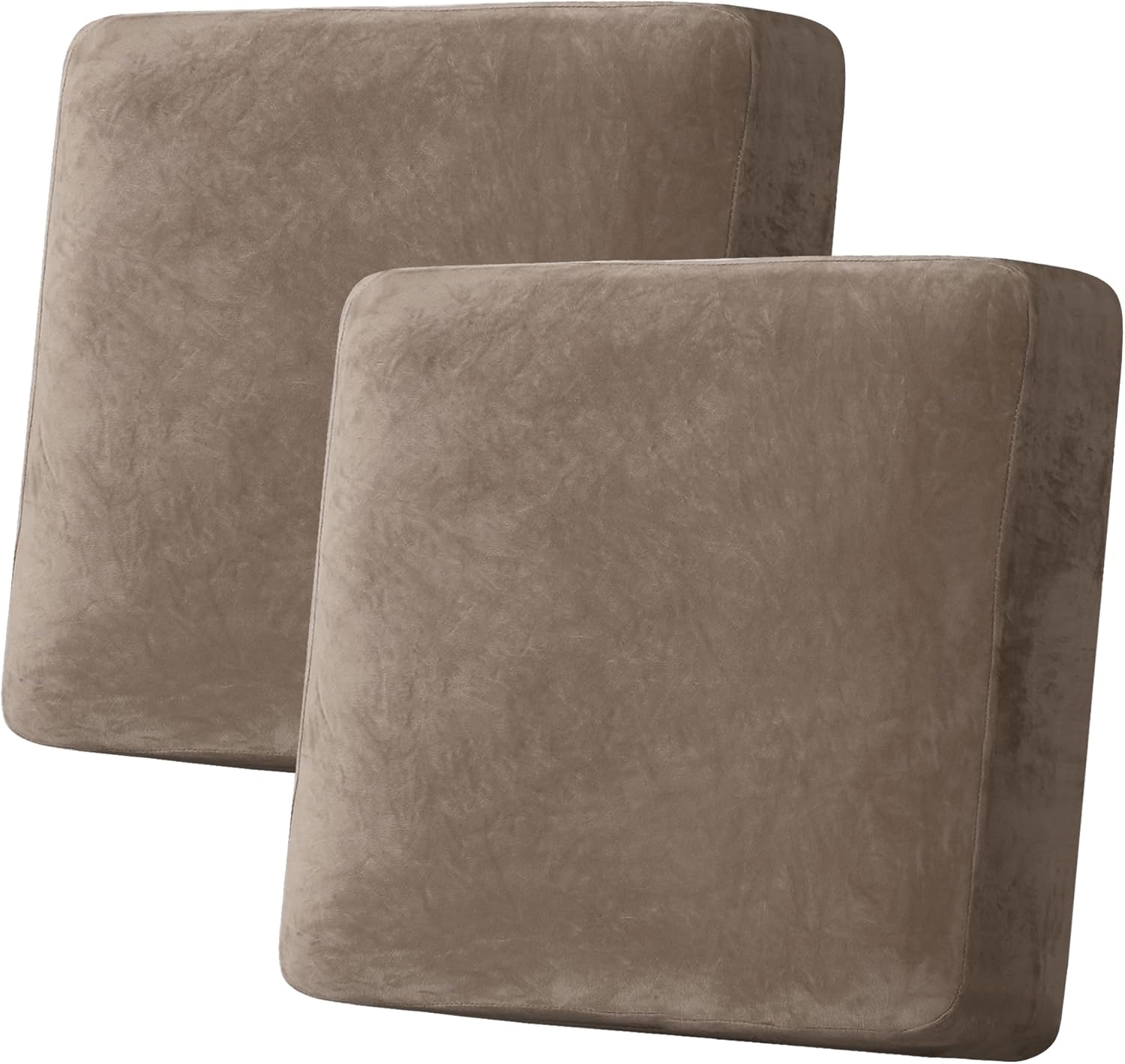 H.VERSAILTEX Velvet Stretch Couch Cushion Cover Plush Cushion Slipcover for Chair Loveseat Sofa Cushion Furniture Protector Seat Cushion Sofa Cover (2 Piece Large Sofa Cushion Covers, Mocha)