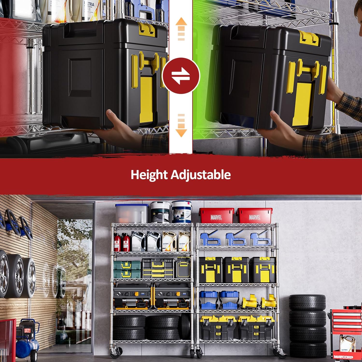 - ćAdjustable Shelves & 360° Lockable WheelsćCustomize the height of each shelf in 1-inch increments to fit everything from large appliances to small bins. Equipped with 4 smooth-rolling 360° caster wheels (2 with locks), this unit offers maximum mobility and stabilityāeffortlessly move it around your home, garage, or office, and lock it in place when needed.