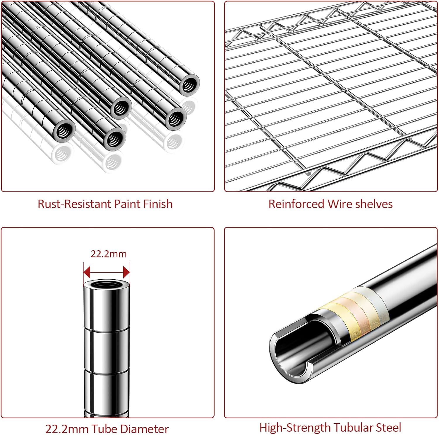 IZEUK 5-Tier Heavy Duty Metal Storage Shelving Unit (Chrome, 17.7" D x 47.2" W x 72.3" H, 1750 lbs Capacity), Adjustable Steel Wire Rack Shelf Organizer for Garage, Kitchen, Pantry, Basement, Laundry