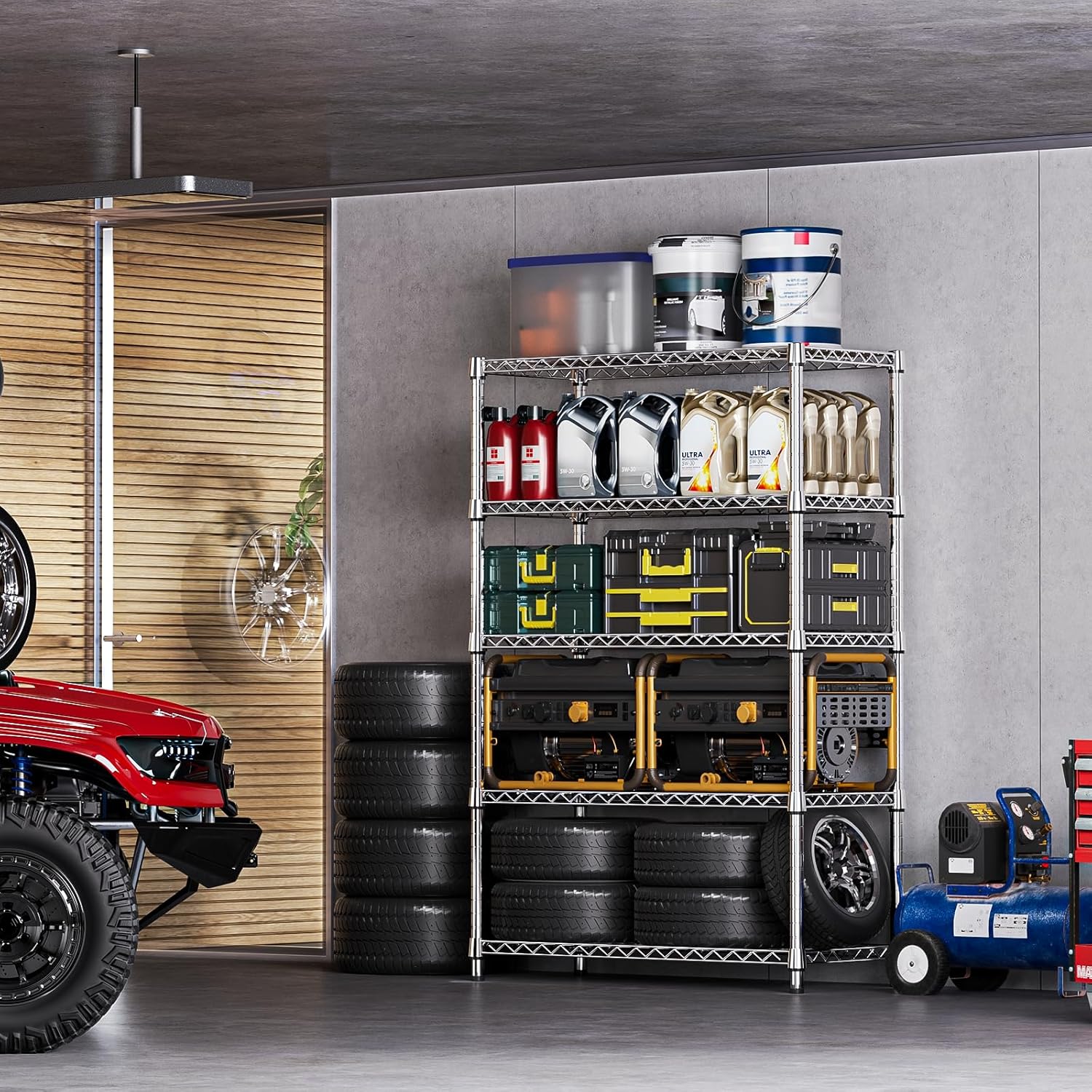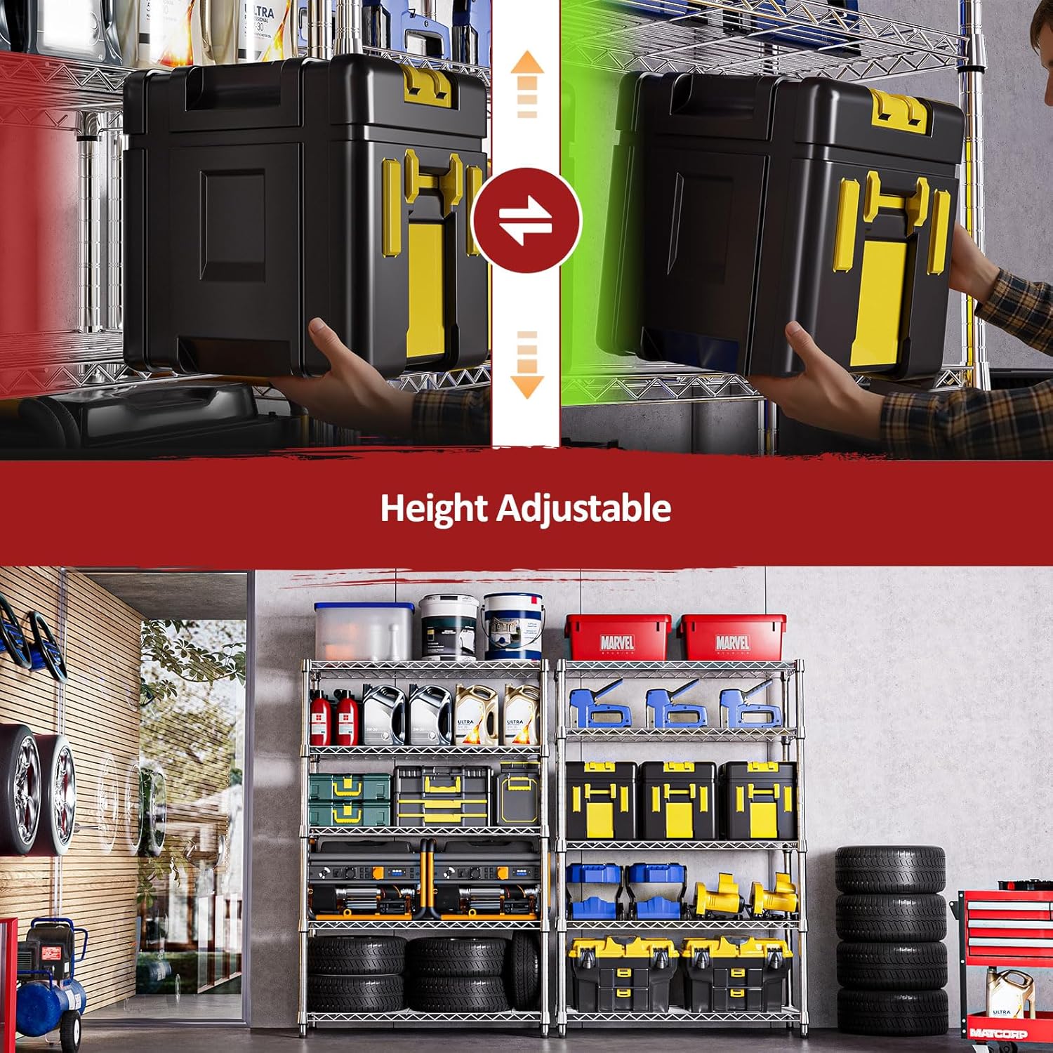 - ćAdjustable Shelves ā Flexible for All NeedsćCustomize your storage your way. Each shelf can be easily adjusted in 1-inch increments to fit items of varying sizesāfrom bulky tools to compact kitchenware. This wire shelving unit adapts to your unique storage needs, creating a more organized and efficient space.