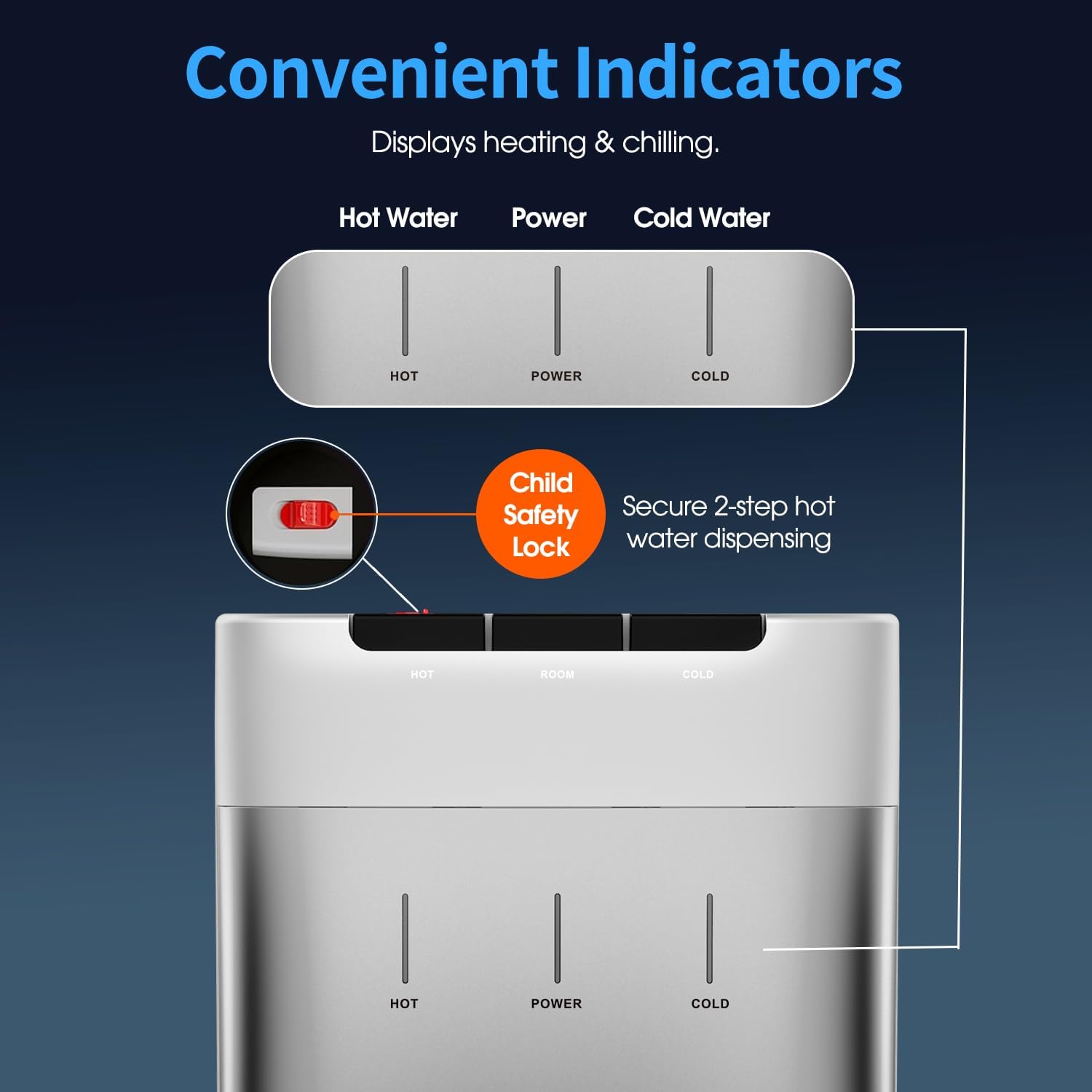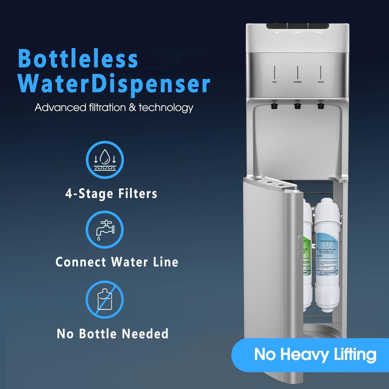 - THREE TEMPERATURES: Three temperature settings allow you to customize your drinking experience. This dispenser features a crisp cold, cool, or piping hot output