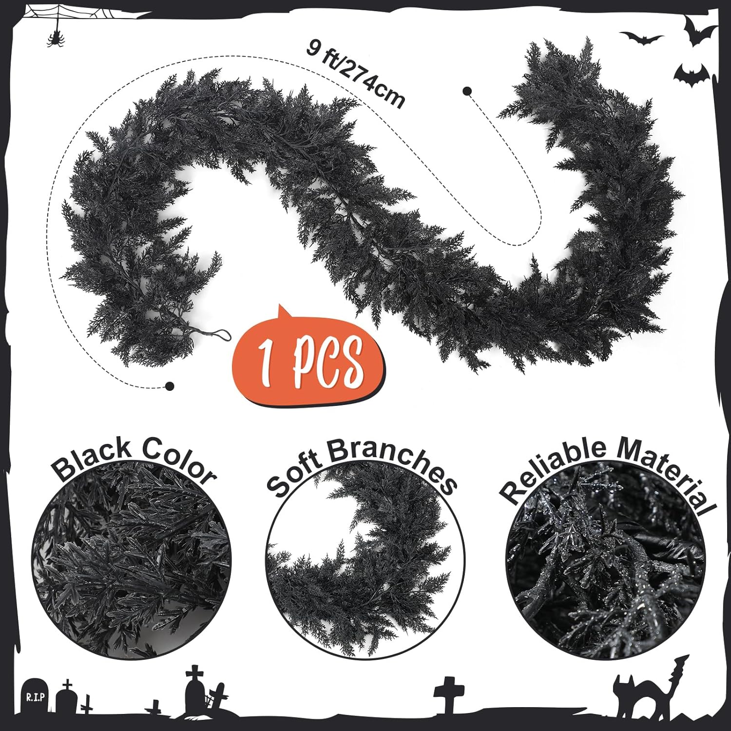 - Suitable Length: Measuring a generous 9 feet, this black cedar garland allows flexible decorating options - wrap it around stair railings, layer it across long tables, or hang it along porch railing to amplify your Halloween dƩcor