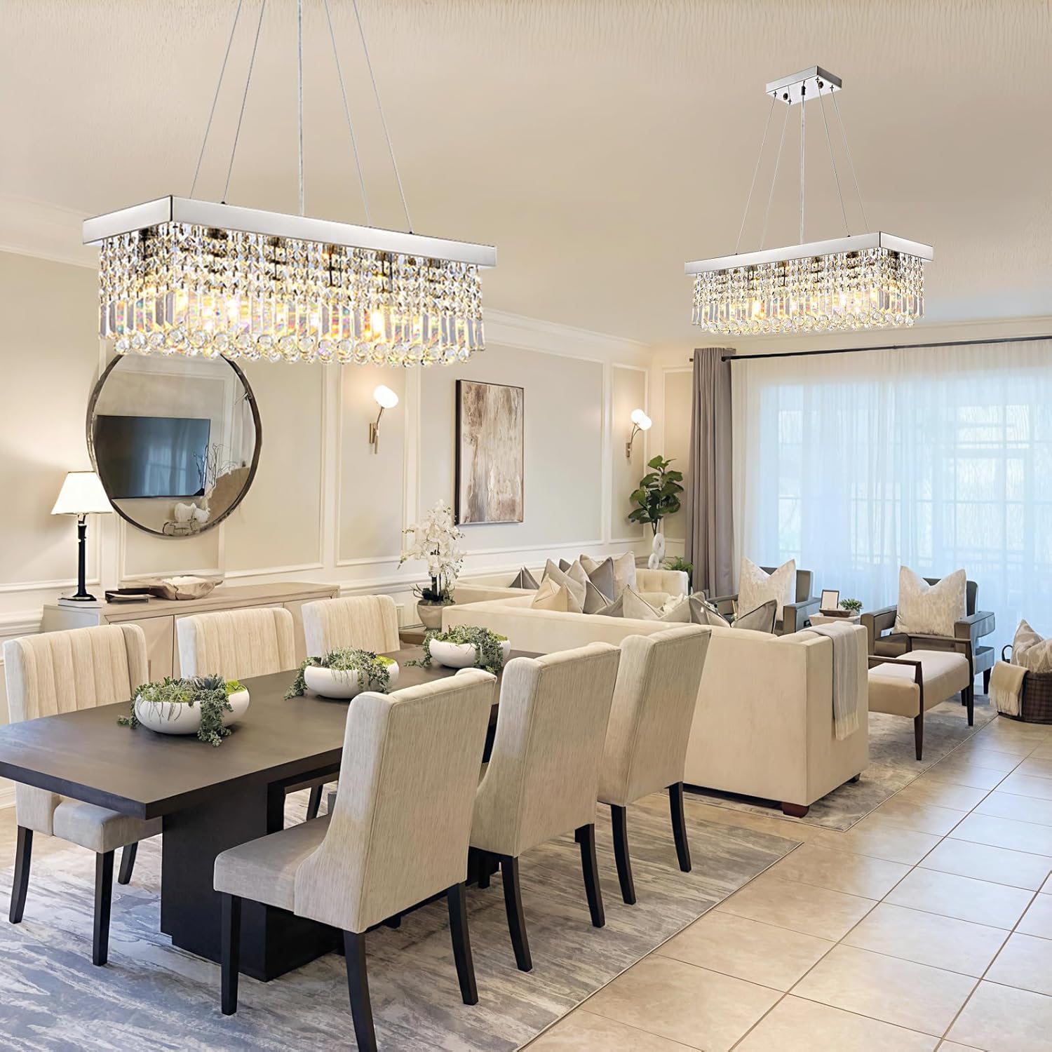 - RECTANGULAR CRYSTAL CHANDELIER: Adorned with top-grade K9 crystals and a gleaming chrome-plated frame, this piece creates a breathtaking display of light. The rectangular chandelier light fixture boasts a mirror-like chrome finish that amplifies each crystalās sparkle, resulting in a true crystal raindrop chandelier that outshines other crystal chandeliers in brilliance.