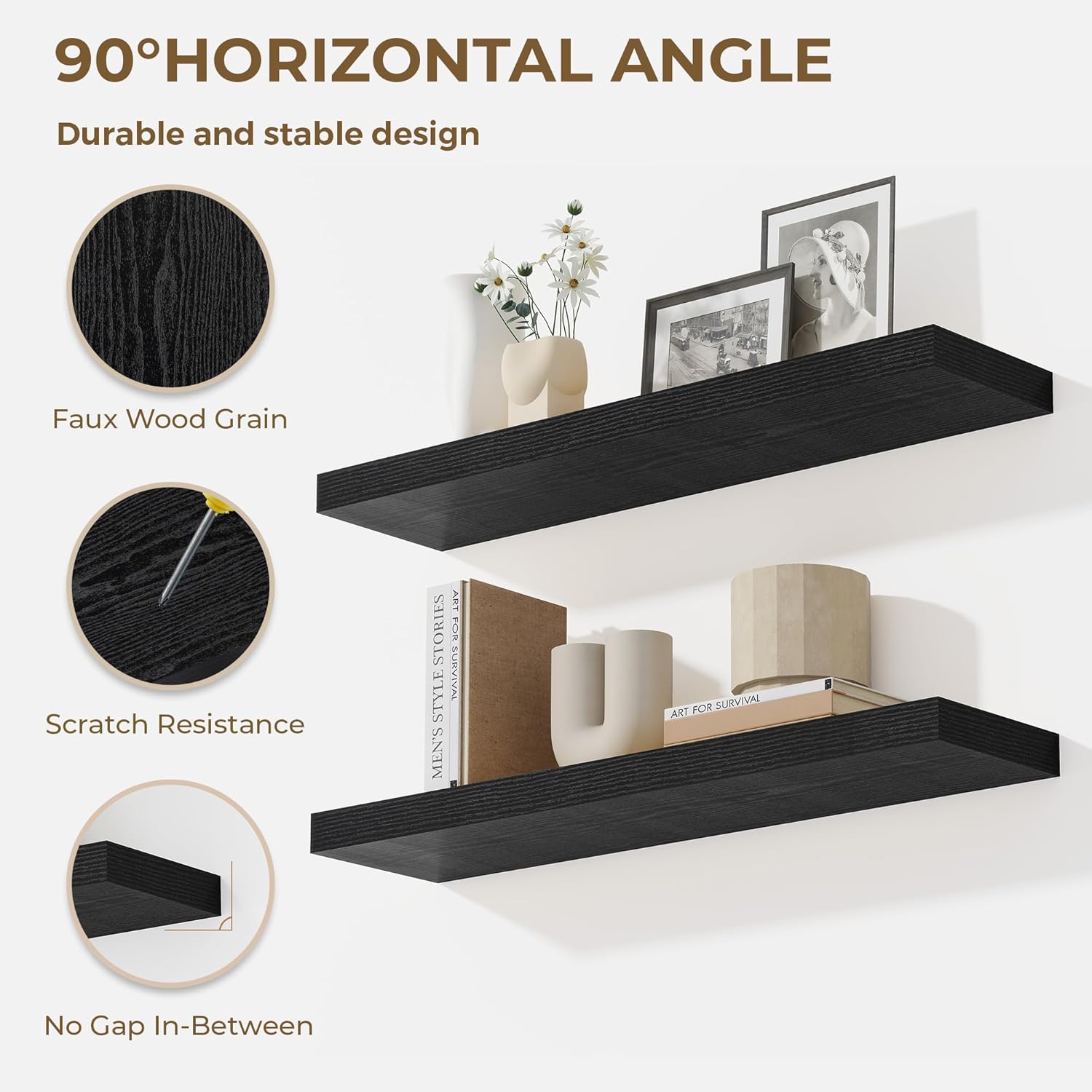 - Sturdy & Secure design: These 36-inch floating shelves feature a durable, concealed mounting bracket that offers reliable support for your belongings. Engineered for hassle-free and stable installation, each shelf includes all the required hardware to ensure a strong, wobble-free holdāperfect for showcasing your favorite decor, photos, or everyday items with confidence and style.