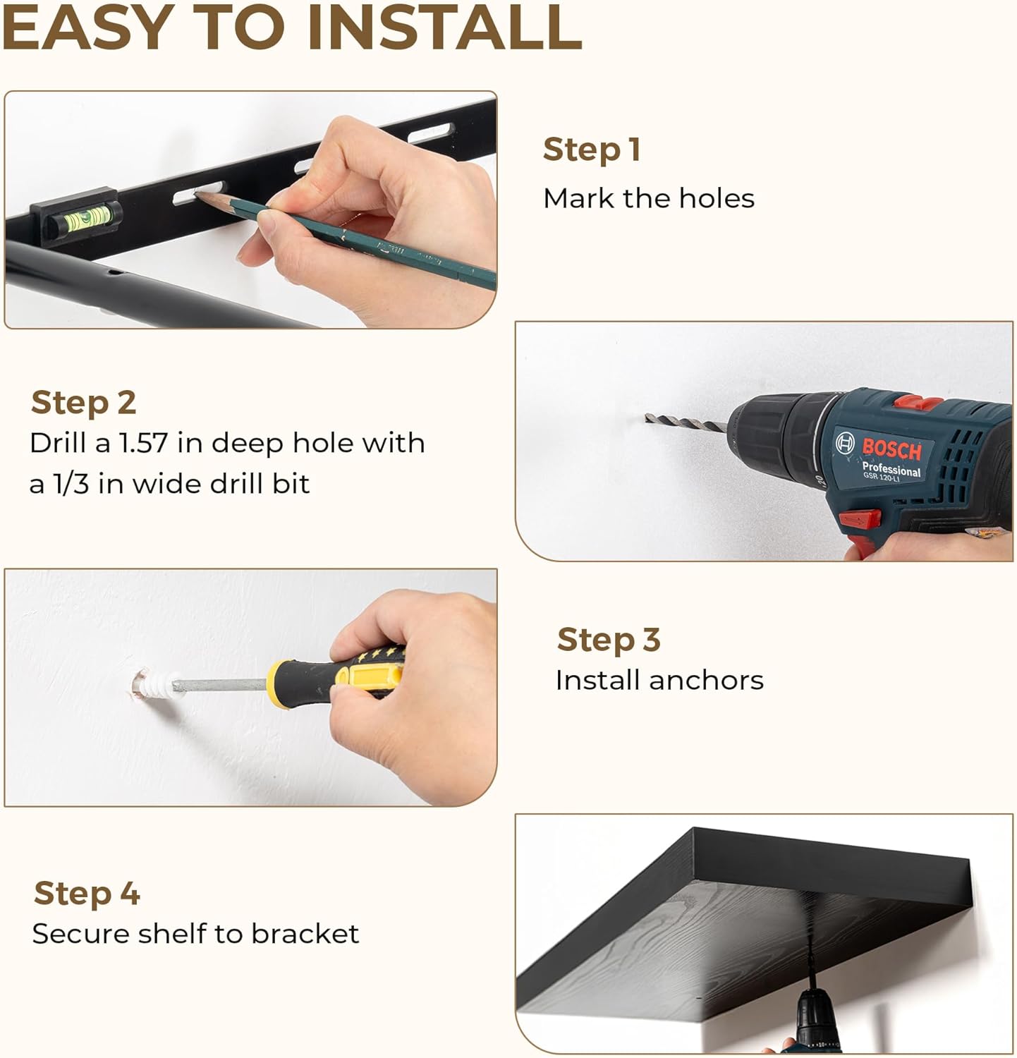 - Sturdy & Secure design: These 55-inch floating shelves feature a durable, concealed mounting bracket that offers reliable support for your belongings. Engineered for hassle-free and stable installation, each shelf includes all the required hardware to ensure a strong, wobble-free holdāperfect for showcasing your favorite decor, photos, or everyday items with confidence and style.