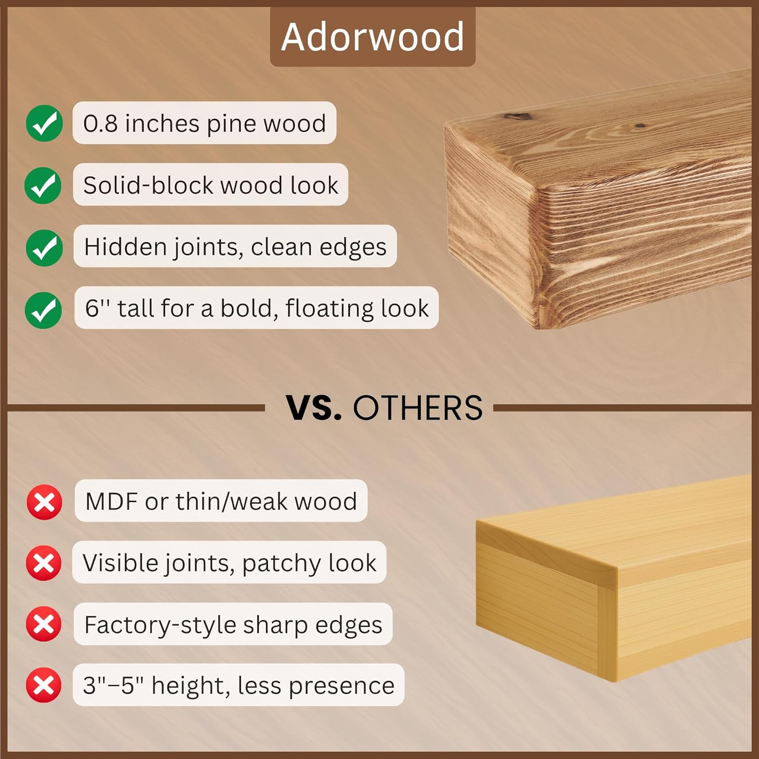 - GENUINE PINE WOOD TEXTURE: Each piece reveals natural knots, small cracks, and unique distressing, ensuring every mantel is one-of-a-kind. Due to the inherent characteristics of real wood, the grain and color may slightly differ from the samples shown.