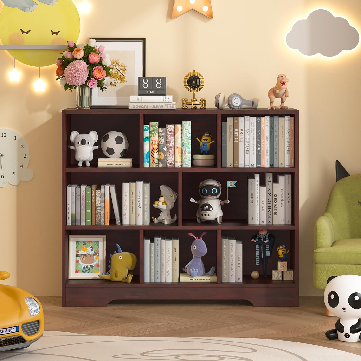- 【Large Capacity Bookcase】This bookshelf features 8 large storage cubes to display and store your books, plants, photos and collections. The Bookcase can be used not only as a bookshelf, but also as a display cabinet, file cabinet and general storage cabinet that can be placed in bedrooms, living rooms and offices.