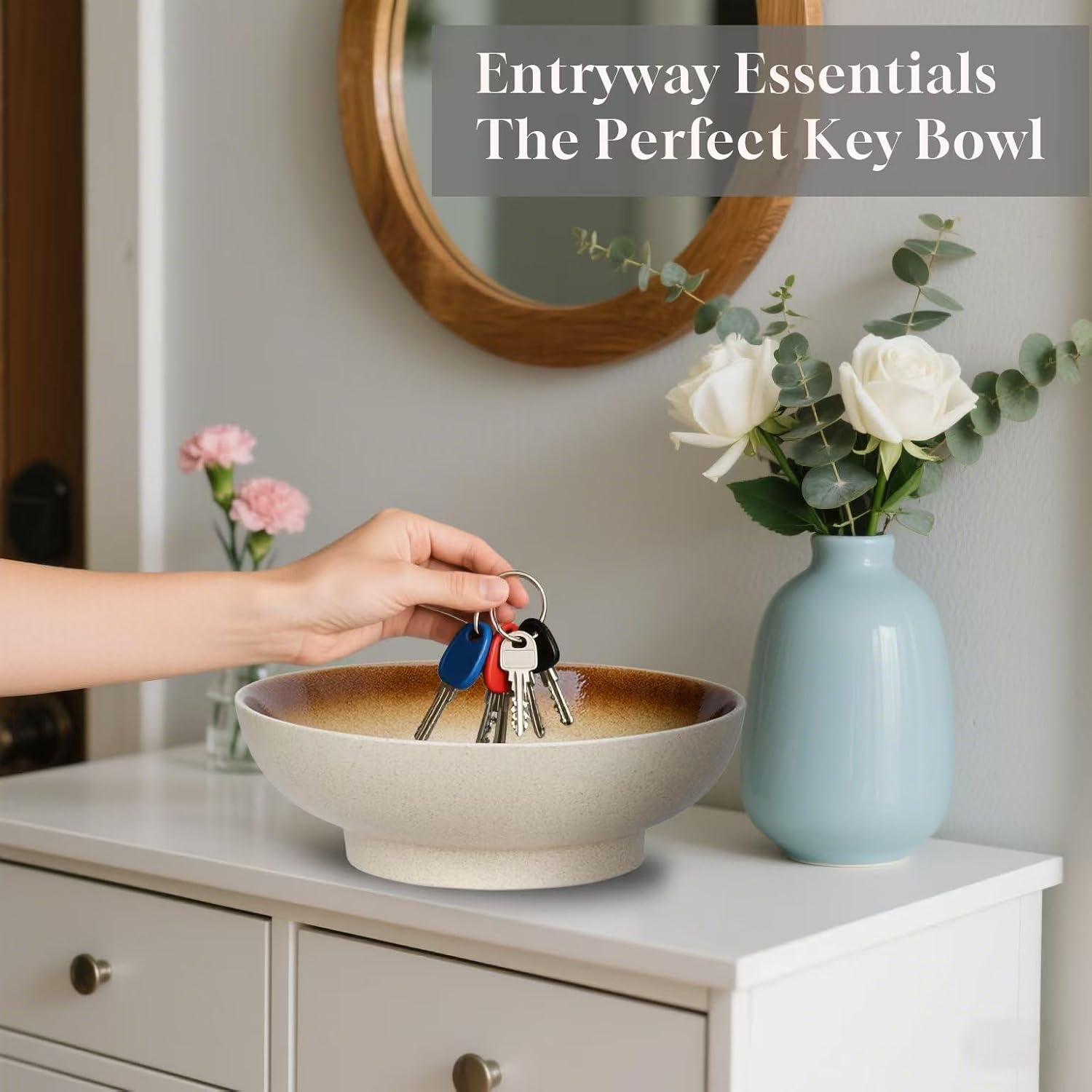 10" Decorative Bowl,Ceramic Fruit Bowl for Kitchen Counter,Coffee Table, Dining Room,Table Centerpiece Bowel,Entryway Key Holder & Jewelry Organizer(Wheat Gold)