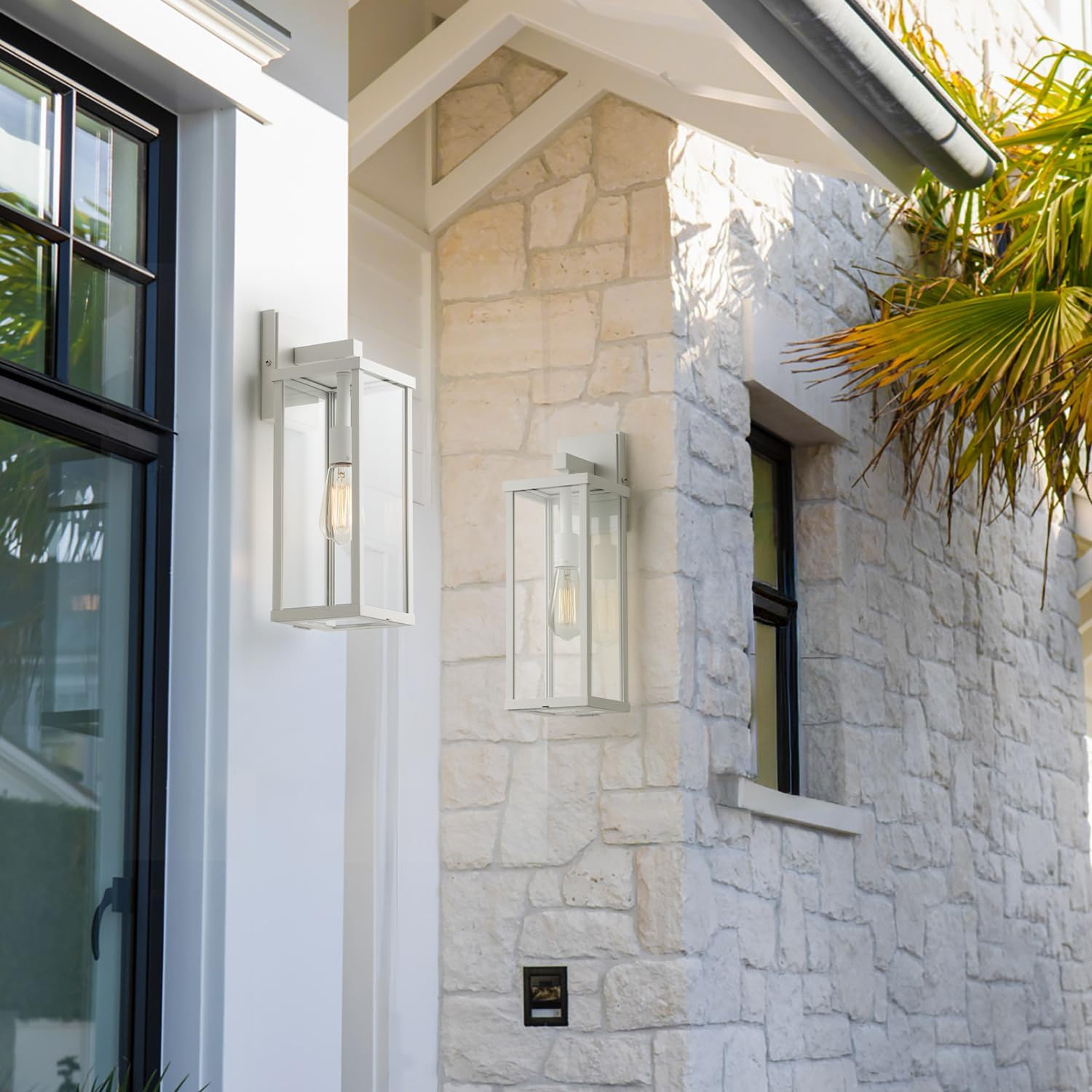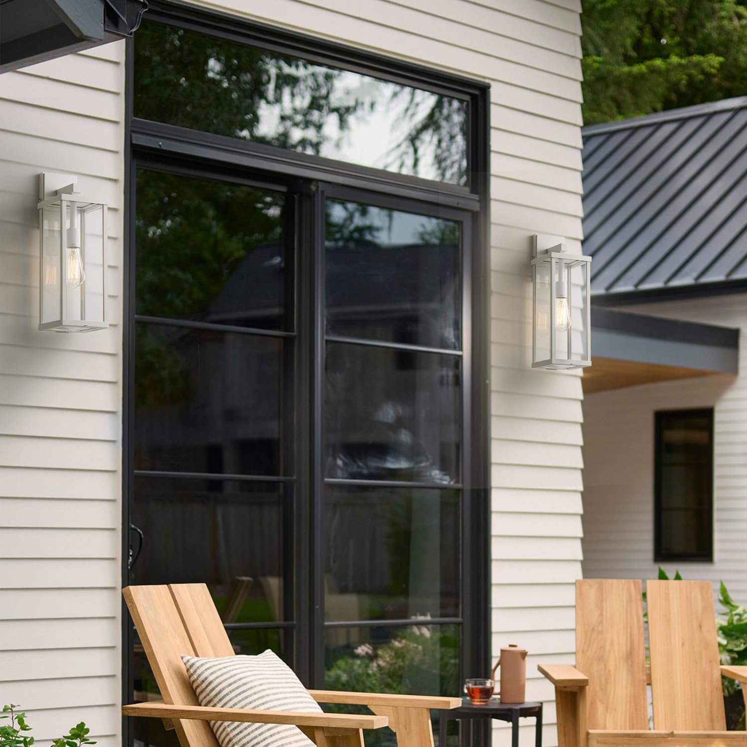 mirrea 18" Classic Outdoor Wall Sconce 1 Light in Matte White Rectangular Metal Frame and Clear Glass Shade Waterproof Porch Light Patio Light Pack of 2