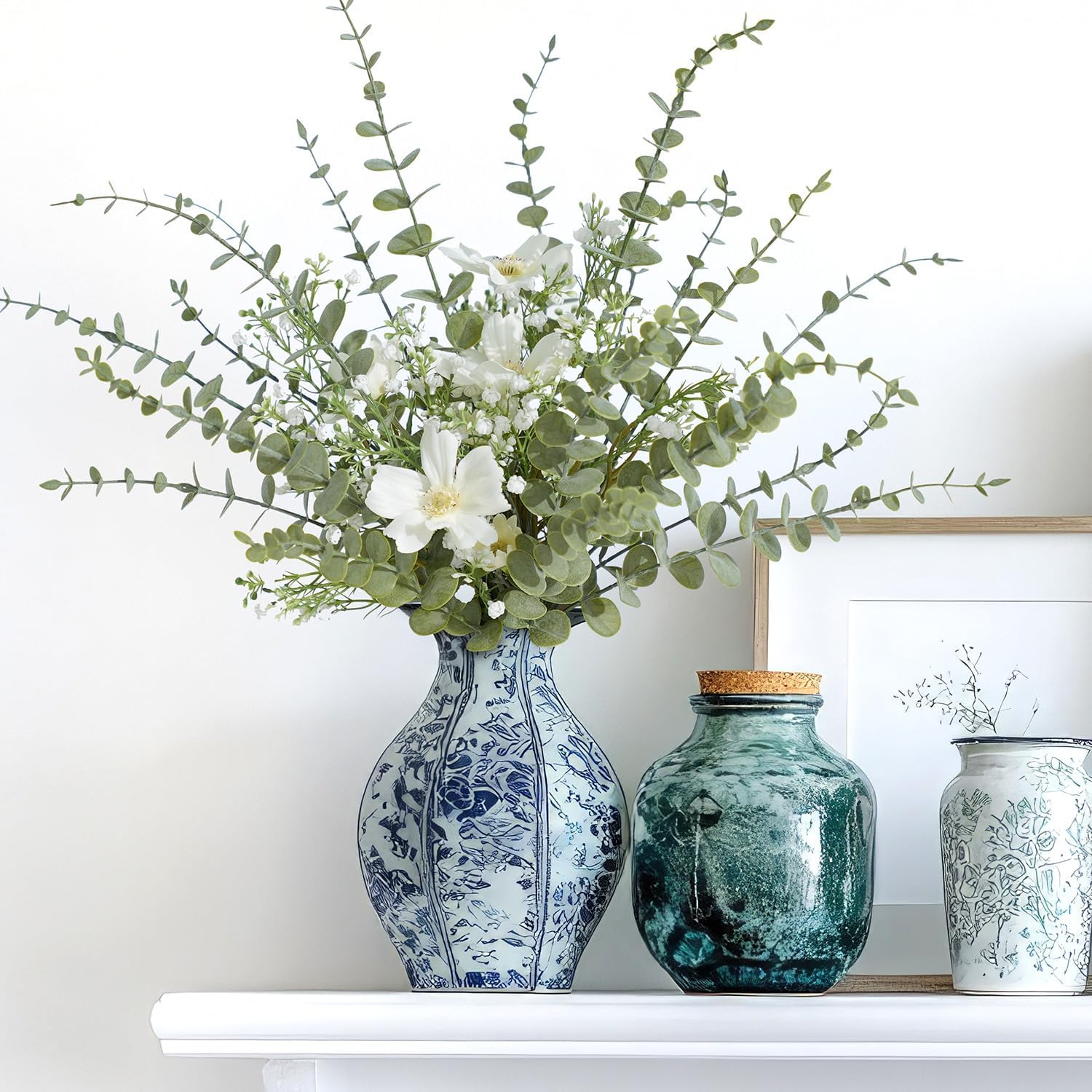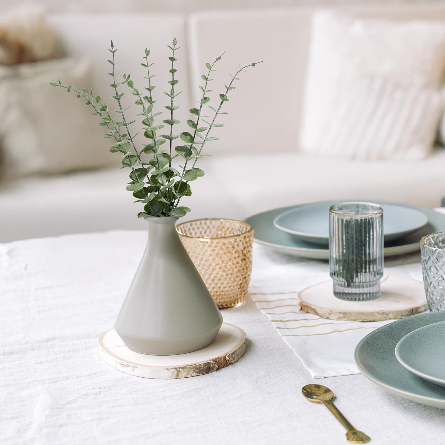 - Suitable for Any Occasion: The eucalyptus stems can be used alone in vases to create a minimalist look or mixed with fresh and dried flowers. Ideal for home decor, wedding bouquets, table centerpieces, farmhouse arrangements, seasonal wreaths, or party backdrops. Whether itās Christmas, baby showers, or a cozy dinner party, these fake eucalyptus stems complement any style