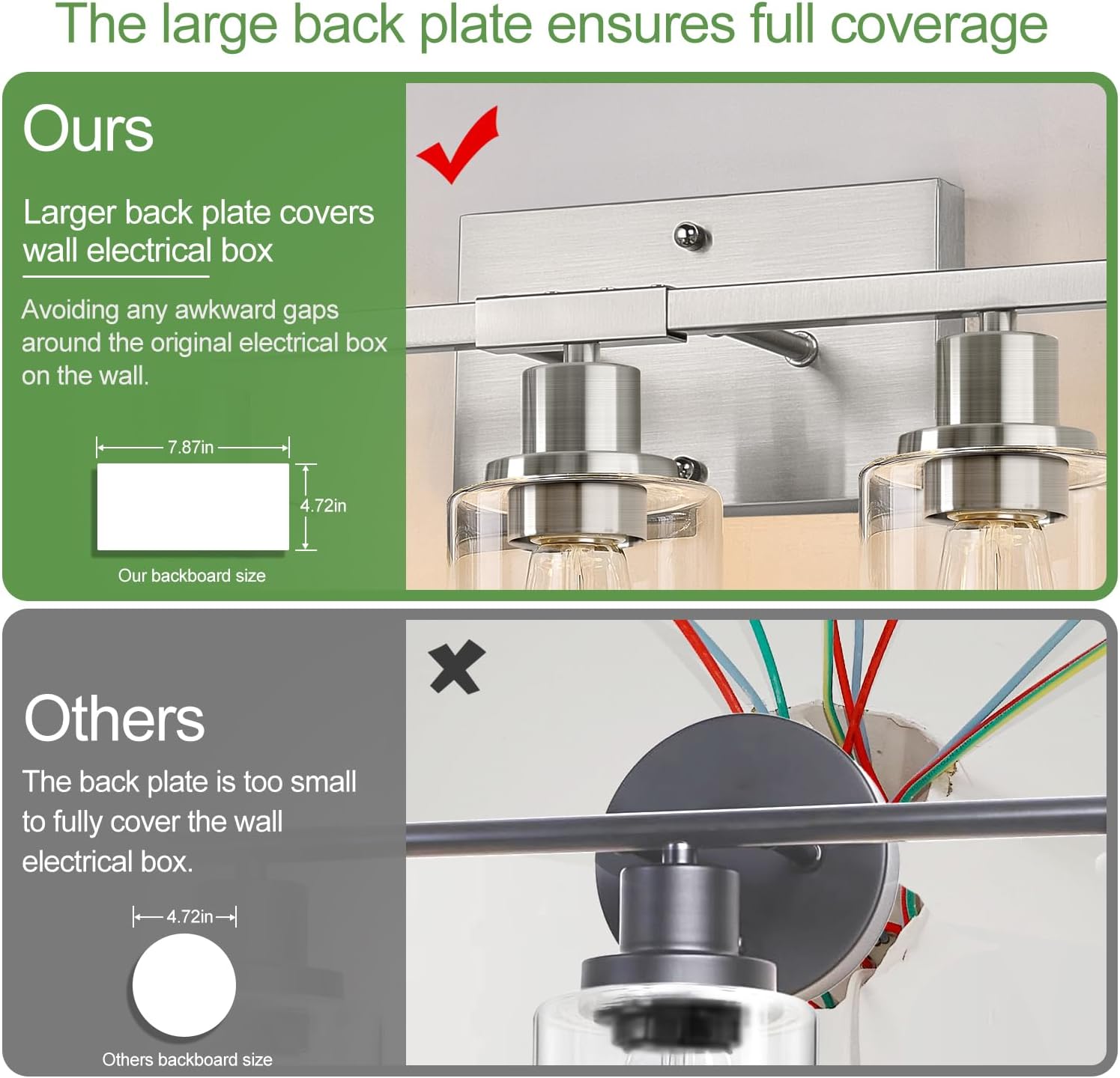 - Premium Durability & Finish: Made from premium metal, this brushed nickel bathroom light fixture is built to last ā the sturdy lamp arms wonāt bend or warp easily. The upgraded finish adds a sleek, elegant look while resisting scratches, stains, and fingerprints, helping your light stay looking new for years to come.