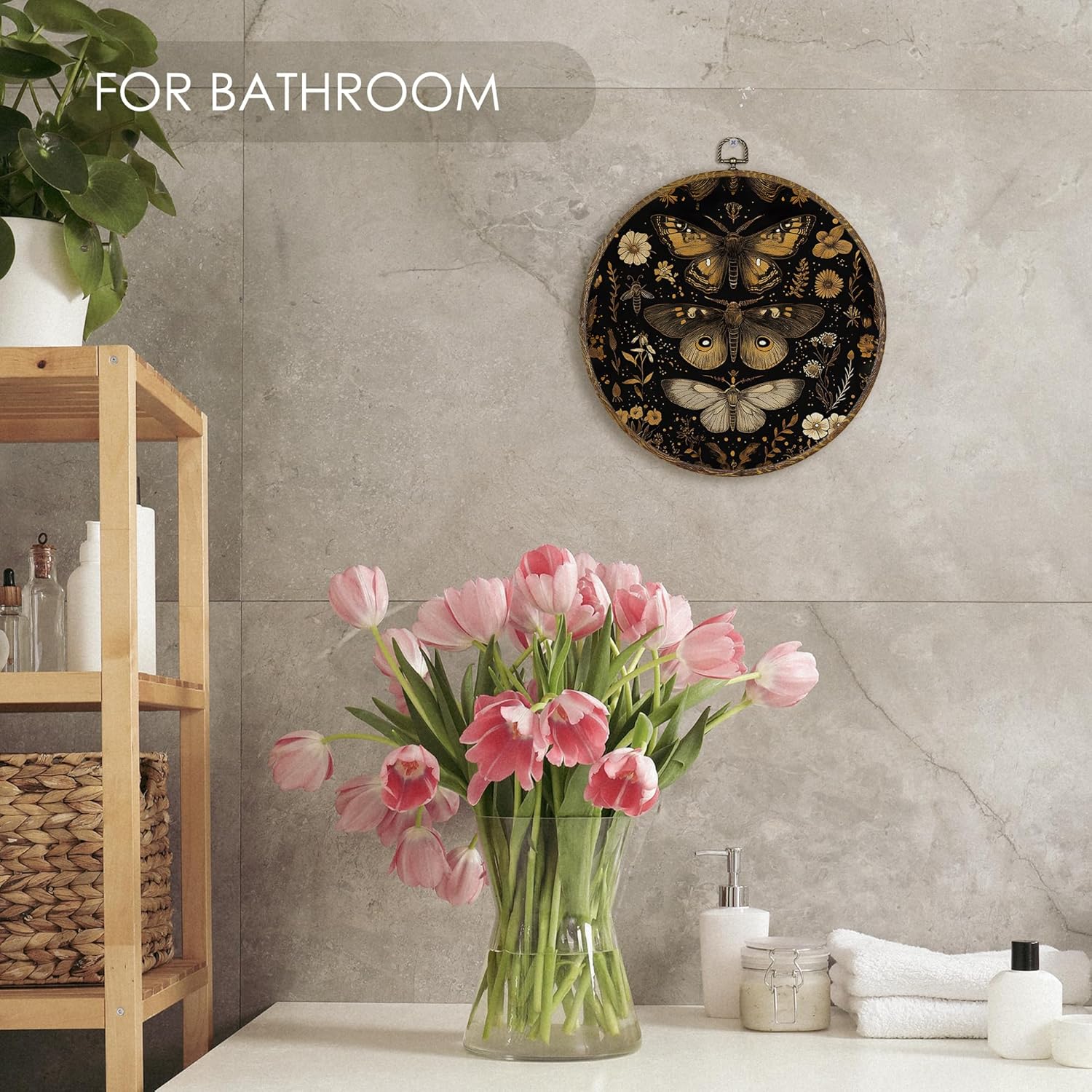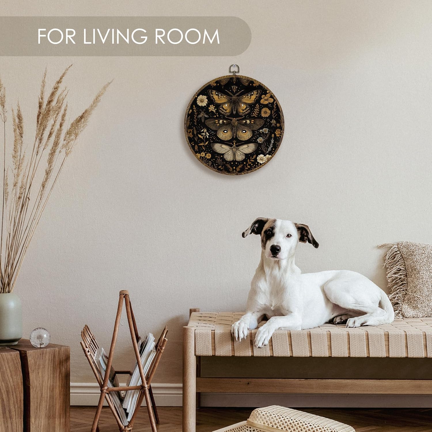 - Premium Material: Crafted with textile canvas and high-quality digital printing (not embroidery), stretched over a round plastic frame with a wood-like finish that resists bending or warping.
