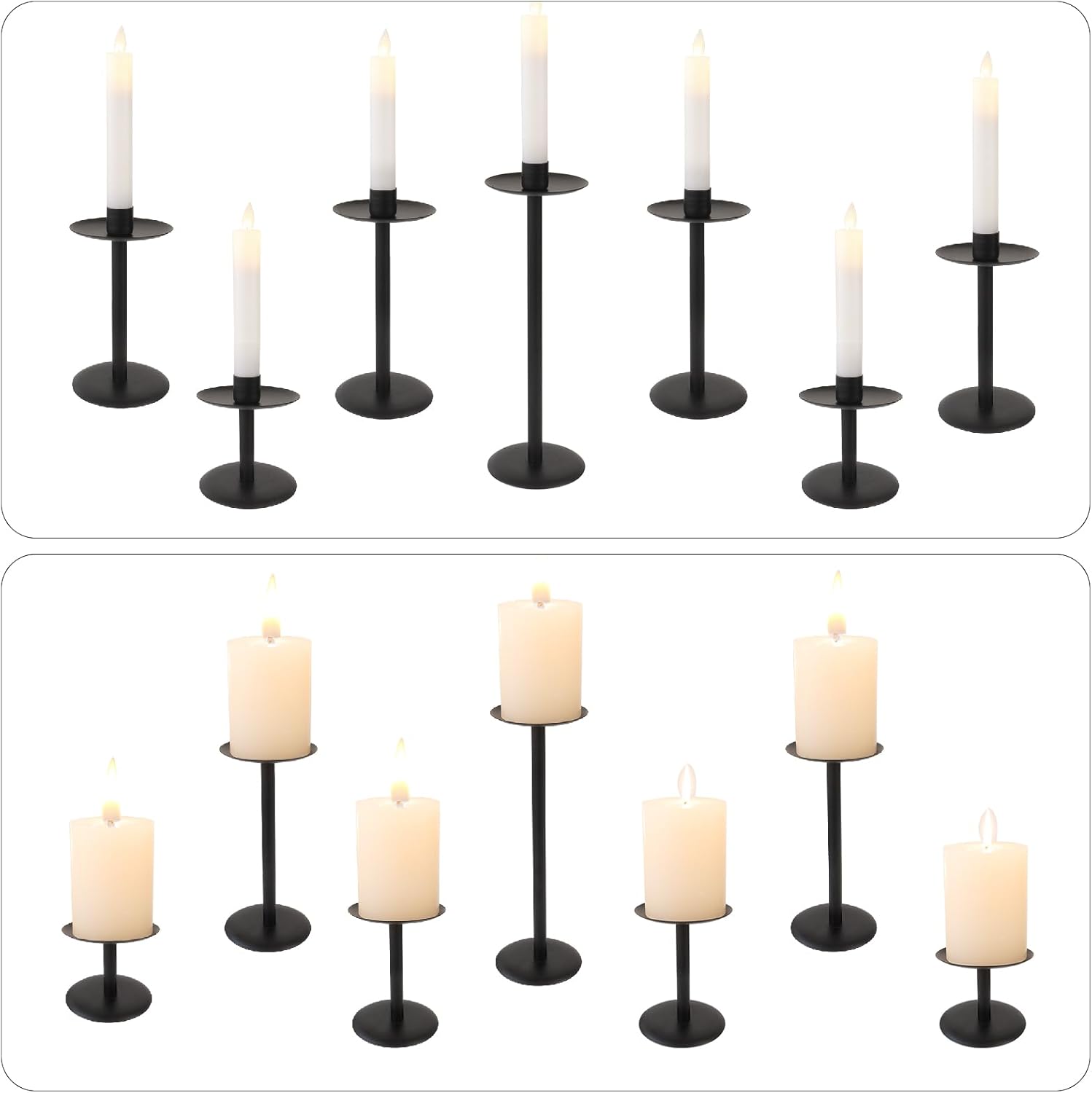 Set of 7 Metal Black Candle Holders, Assemblable Pillar and Taper Candlesticks, Halloween Fall Thanksgiving Day Dining Table Centerpieces Decor, Mantle Fireplace Candle Sticks Decorations