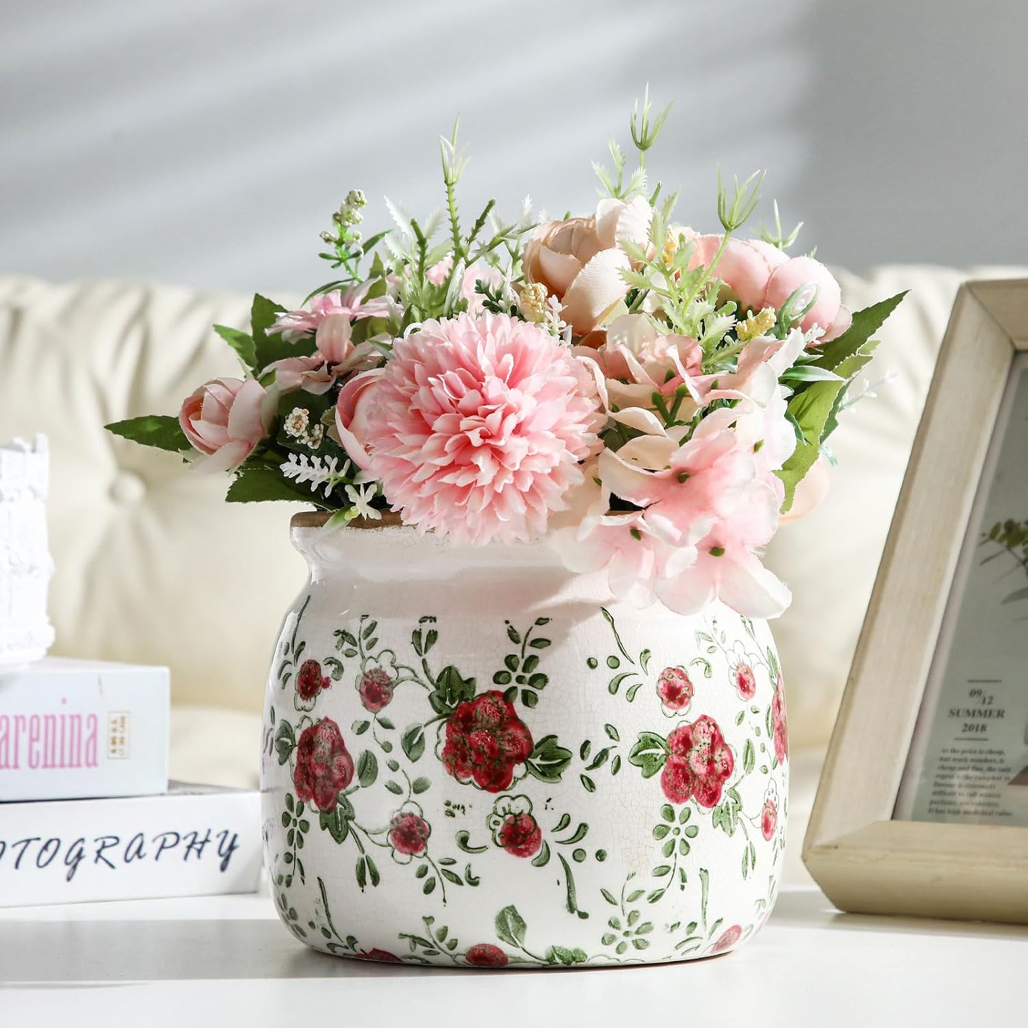 - Charming Wild Rose Pattern: featuring a beautifully hand painted wild rose design in rich red hues, this vintage ceramic planter brings romantic countryside charm to your home; Each flower motif evokes vintage garden aesthetics, perfect for cottage core lovers