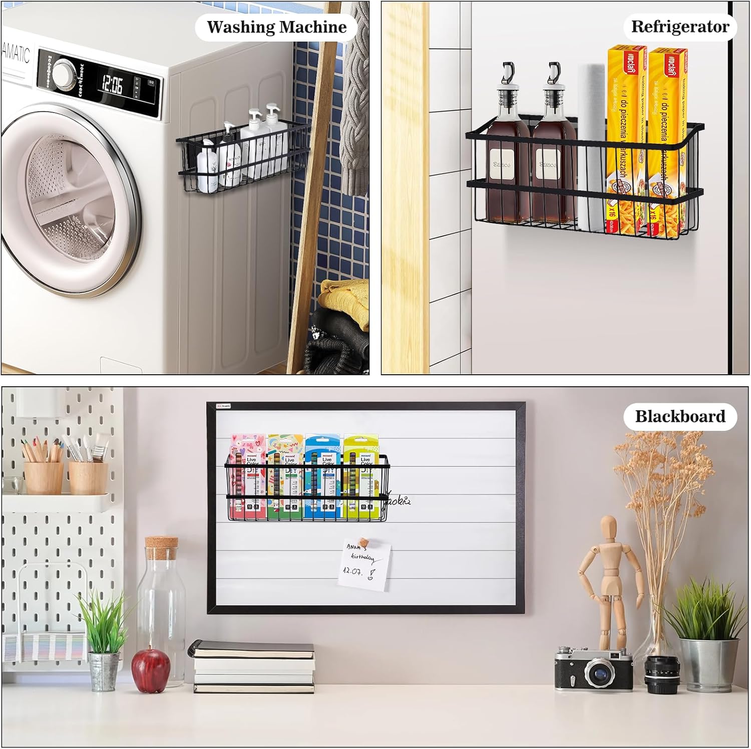 Magnetic Storage Basket, Large Magnetic Fridge Basket with Strong Magnet for Kitchen Laundry Room Office School Organization and Home Dryer Ball Storage, 14.96"x3.74"x5.91"
