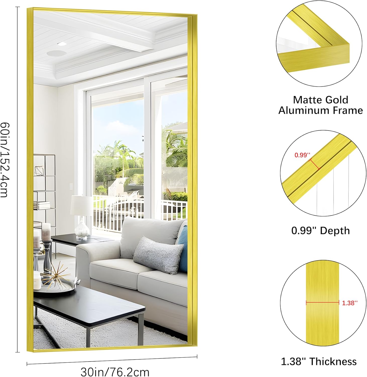 Gold Bathroom Mirror, 30x60 Inch Rectangular Deep Frame Mirror, Large Wall Mounted Bathroom Vanity Mirror Over Sink for Bedroom,Restroom, Living Room, Hangs Vertically or Horizontally