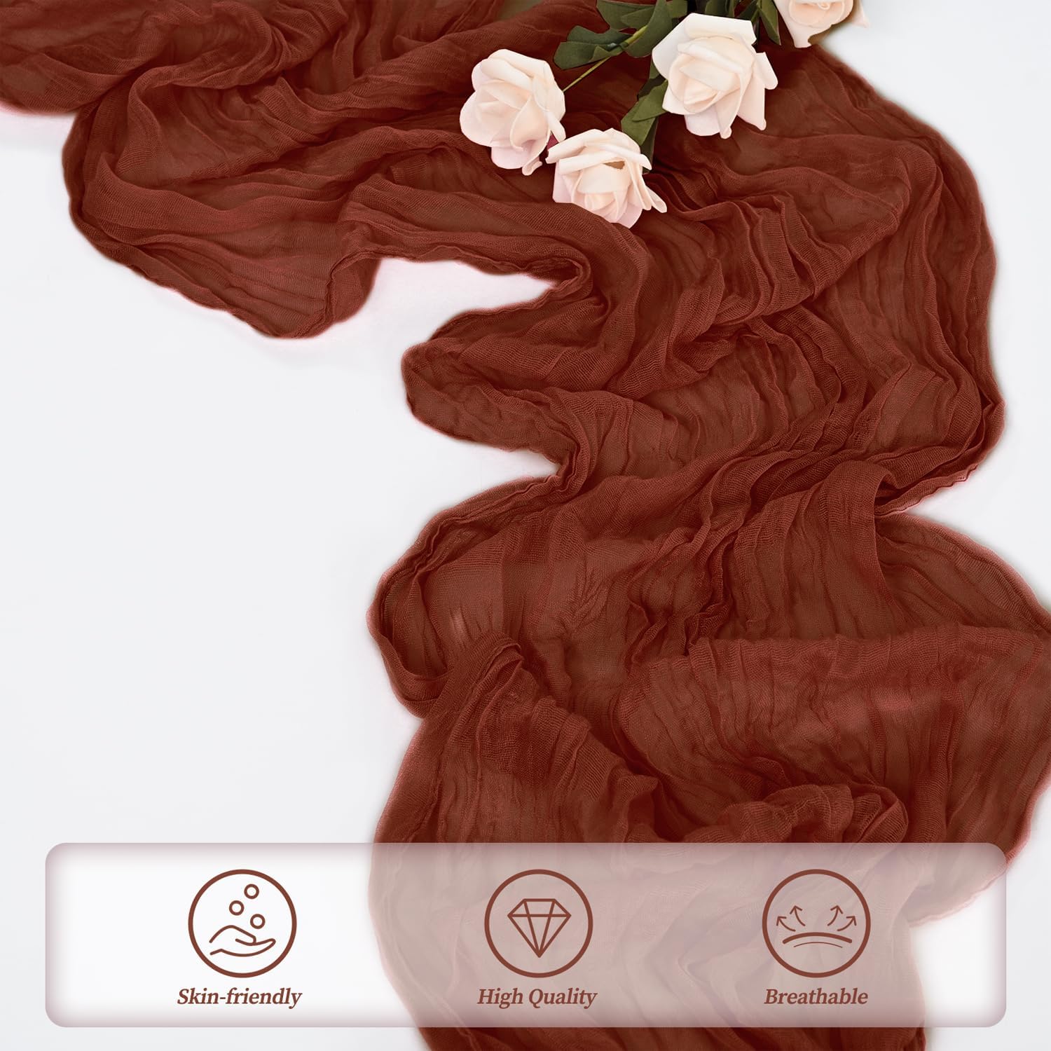 6 Pack Terracotta Cheesecloth Table Runner 10FT Boho Rustic Cheese Cloth Table Runner for Wedding 20 x 120 Inch Long Bridal Shower Baby Shower Gauze Fabric Sheer Birthday Party Table Decorations