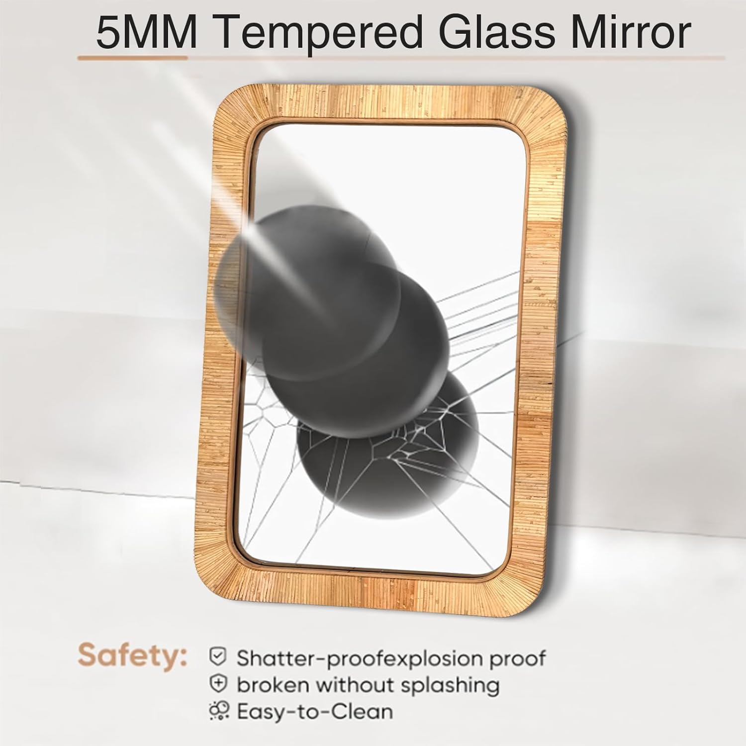 - 【Artisanal Craftsmanship】Crafted from premium natural materials and treated with advanced oxidation, the frame of this rectangular bathroom mirror achieves an elegant, long-lasting finish. A protective moisture-resistant coating further ensures resilience against humidity.