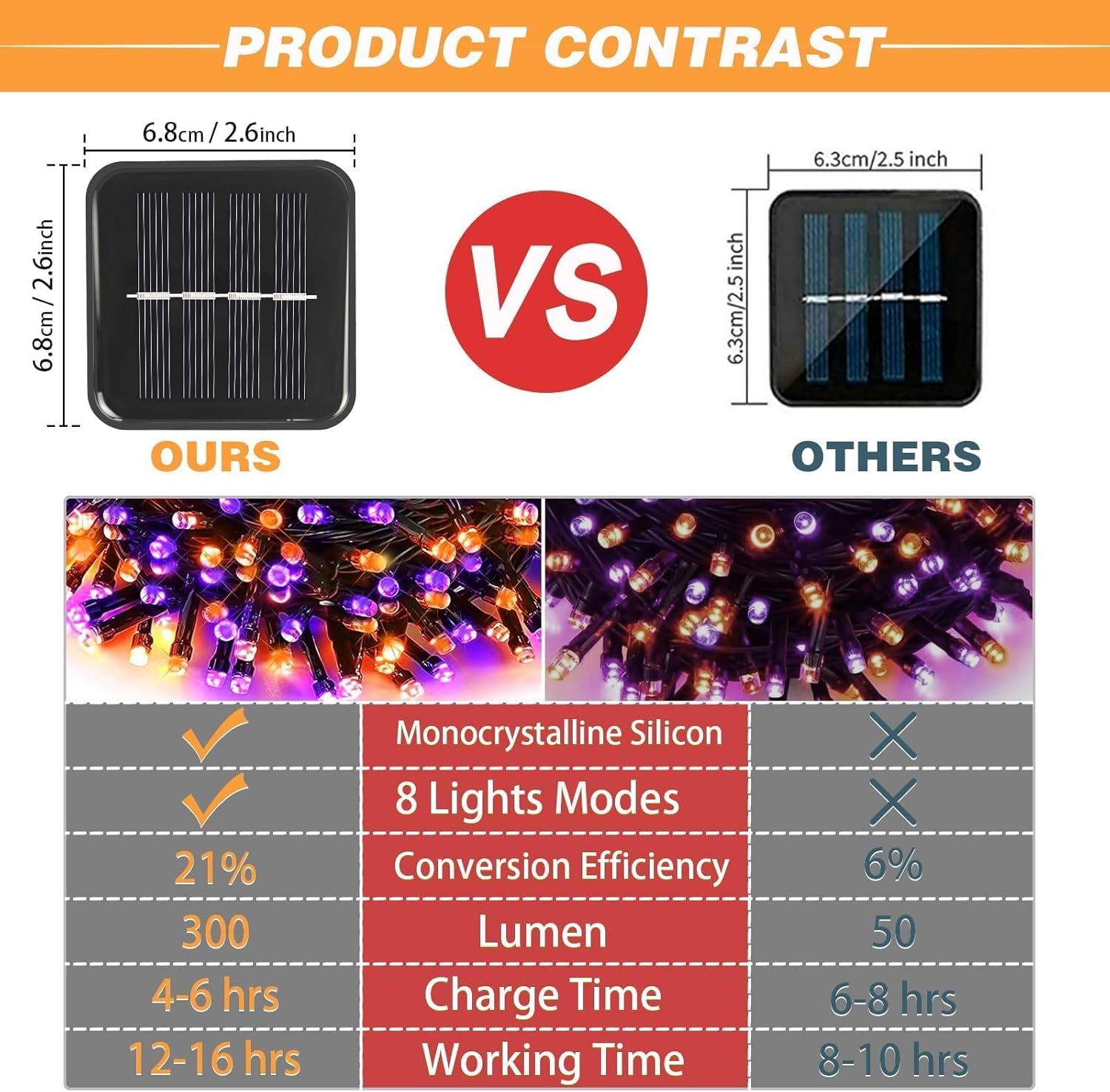 - ćVersatile Outdoor/Indoor String LightsćSolar Halloween string lights with a total of 6 strings allow you to be more flexible with your imagination and can be easily installed wherever you need to decorate. The solar lights can be molded into various shapes for gardens, patios, trees, porches, roofs, fences, bistros, restaurants, hotels, commercial buildings. It can also be used for parties, Halloween and New Year parties to create a warm and joyful holiday atmosphere.