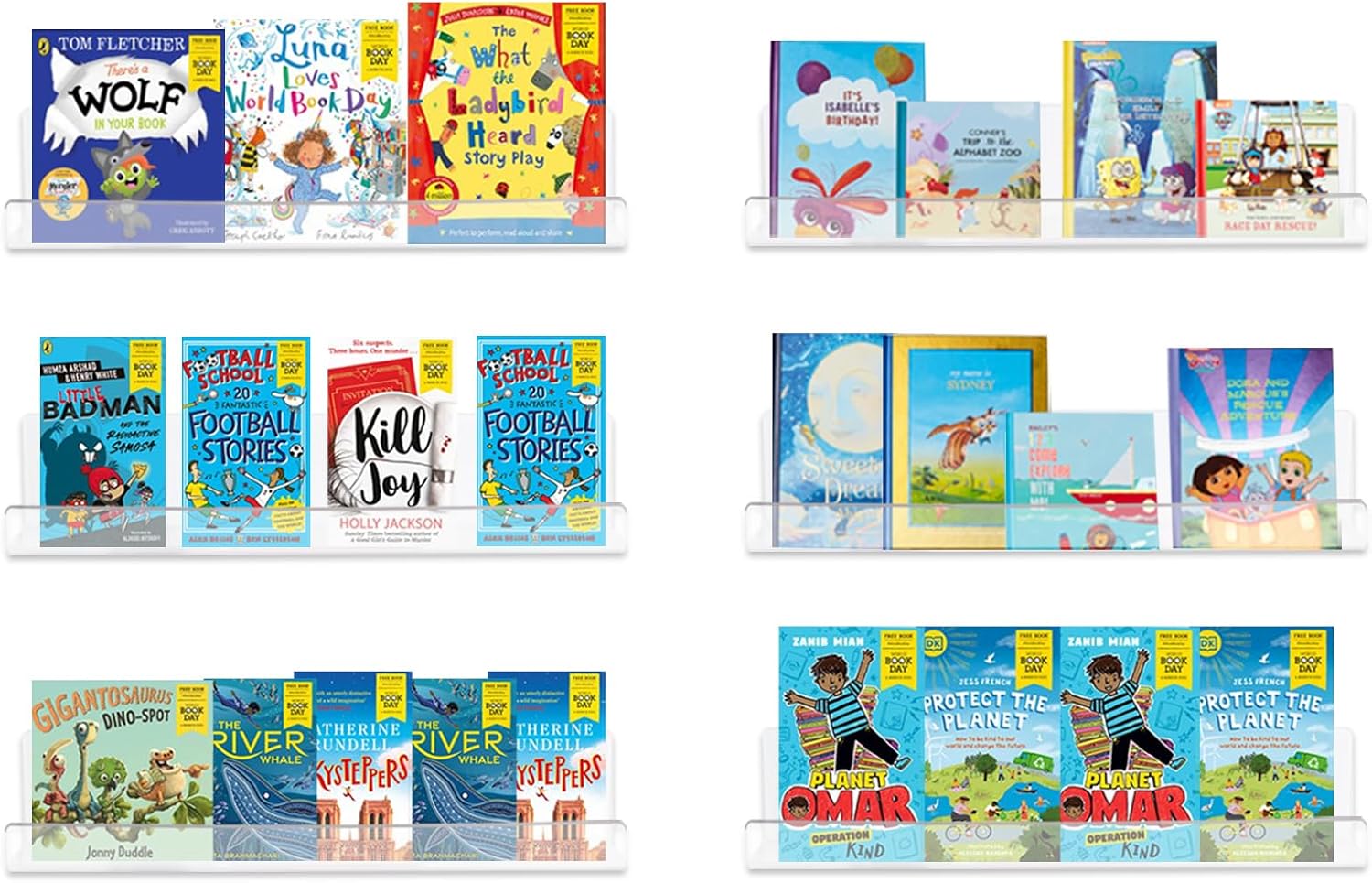 - 2 WAYS TO INSTALL: This clear book shelves can be used upward or downward. It comes with all necessary mounting hardware, including screws, wall anchors, and non-marking glue. You can install it with screws after drilling (rough wall surface), or directly install it with non-marking glue (smooth wall surface)