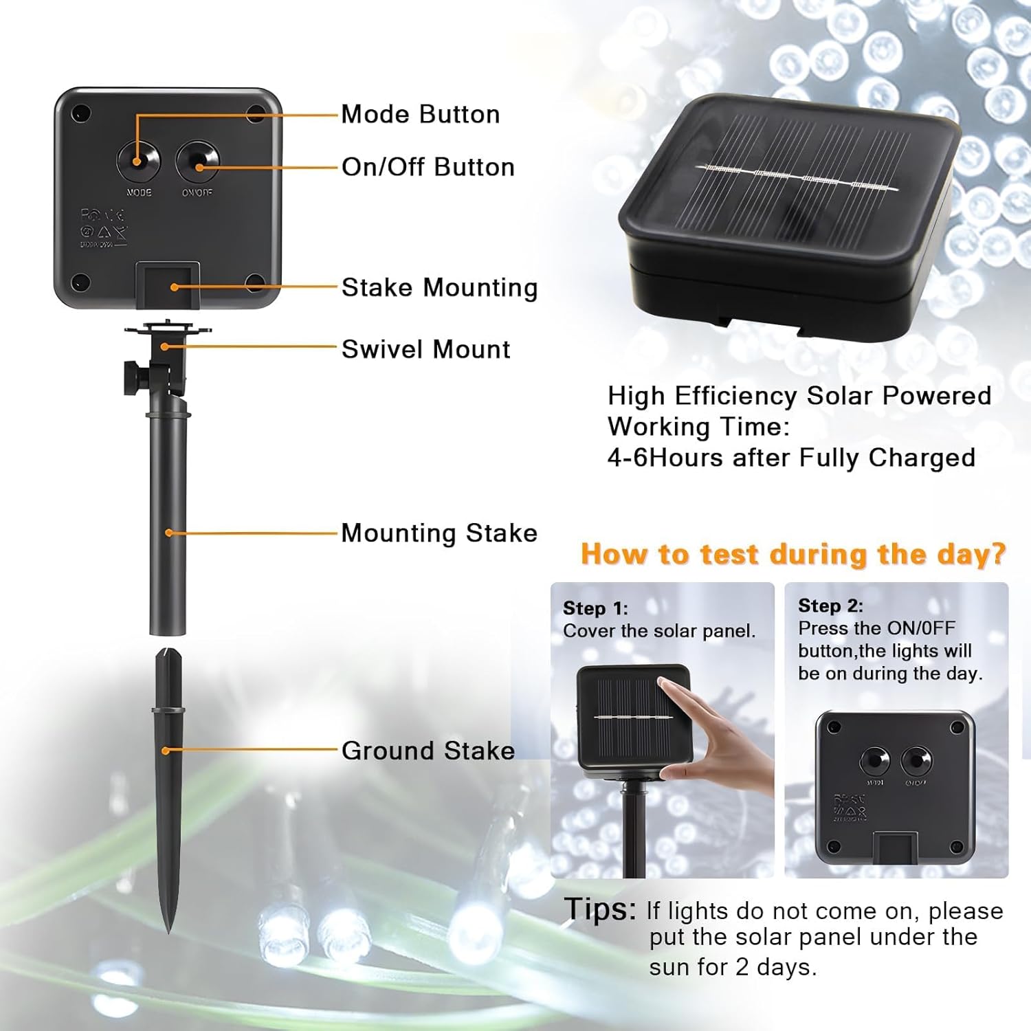 - 【Excellent After Sale Service】If you are not satisfied with your purchase, please contact us. We will reply you within 24 hours and deal with it until you are satisfied. NOTE: It will automatically charge and light up at night when the switch behind the solar panel is turned on.