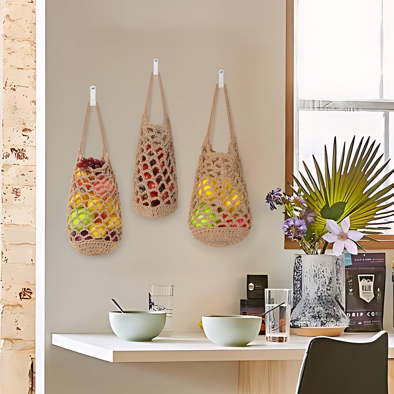 - 👍【Versatile Hanging Storage Baskets】The boho wall hanging basket kit can be hung in dinning room, kitchen, patio, bringing you some relaxation and joy. Can be used as door basket for produce, fruit vegetable wall basket, hanging plant basket and storage pocket for remotes, glasses and any other items that were always lost around.