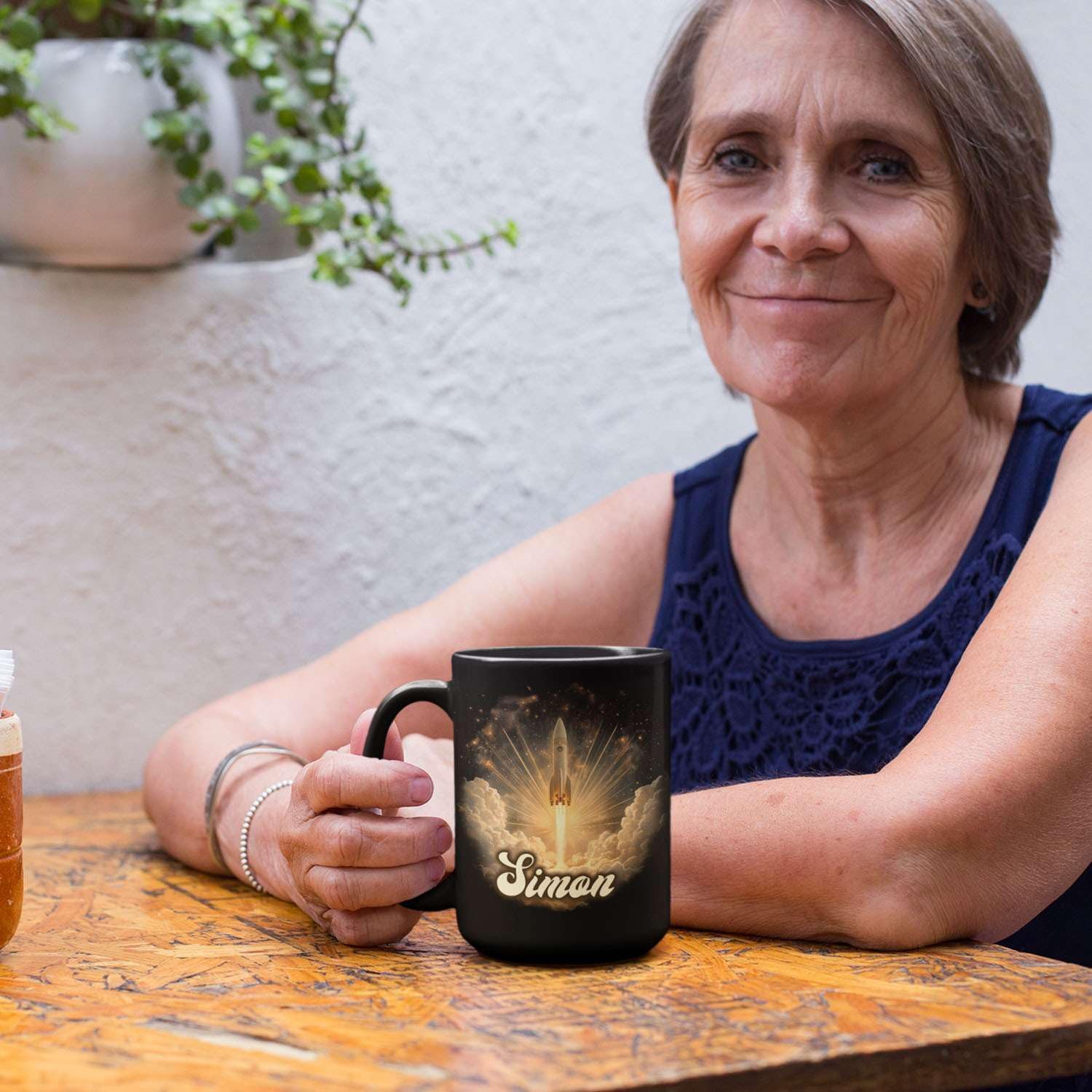 Sci-Fi Inspired Ceramic Mug for Men, Custom Name Coffee Mug 11oz or 15oz, Personalized Rocket Enthusiast Black Cup, Custom Vibrant Rocket Coffee Cup, Gifts for Astronaut Fans
