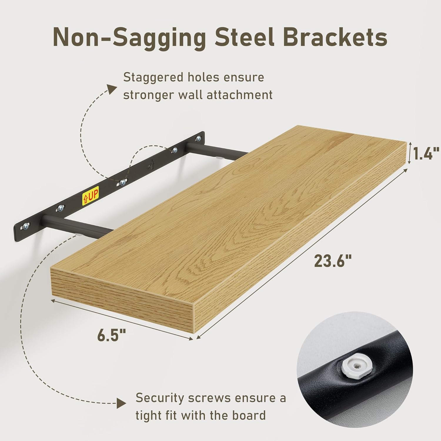 Fun Memories Floating Shelves Wall Shelf 24 inches Long, Farmhouse Bathroom Shelves Bedroom Kitchen Living Room Shelf Wall Mounted, 24 x 6.7 x 1.4 inch Set of 3, Oak Color