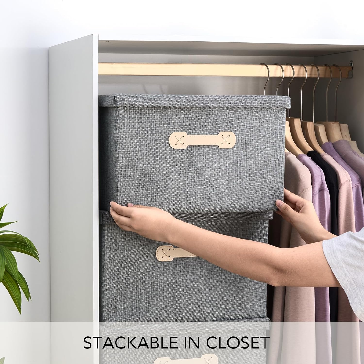 Enzk&Unity Decorative Storage Boxes with Lids, 3 Pack Grey Fabric Storage Bins with Handle, Foldbale and Stackable Storage Boxes for Shelf, Closet, Bedroom, Living Room