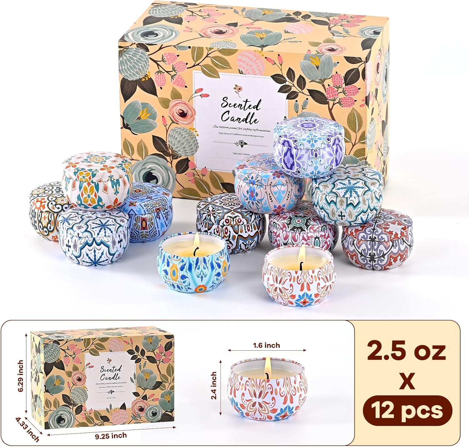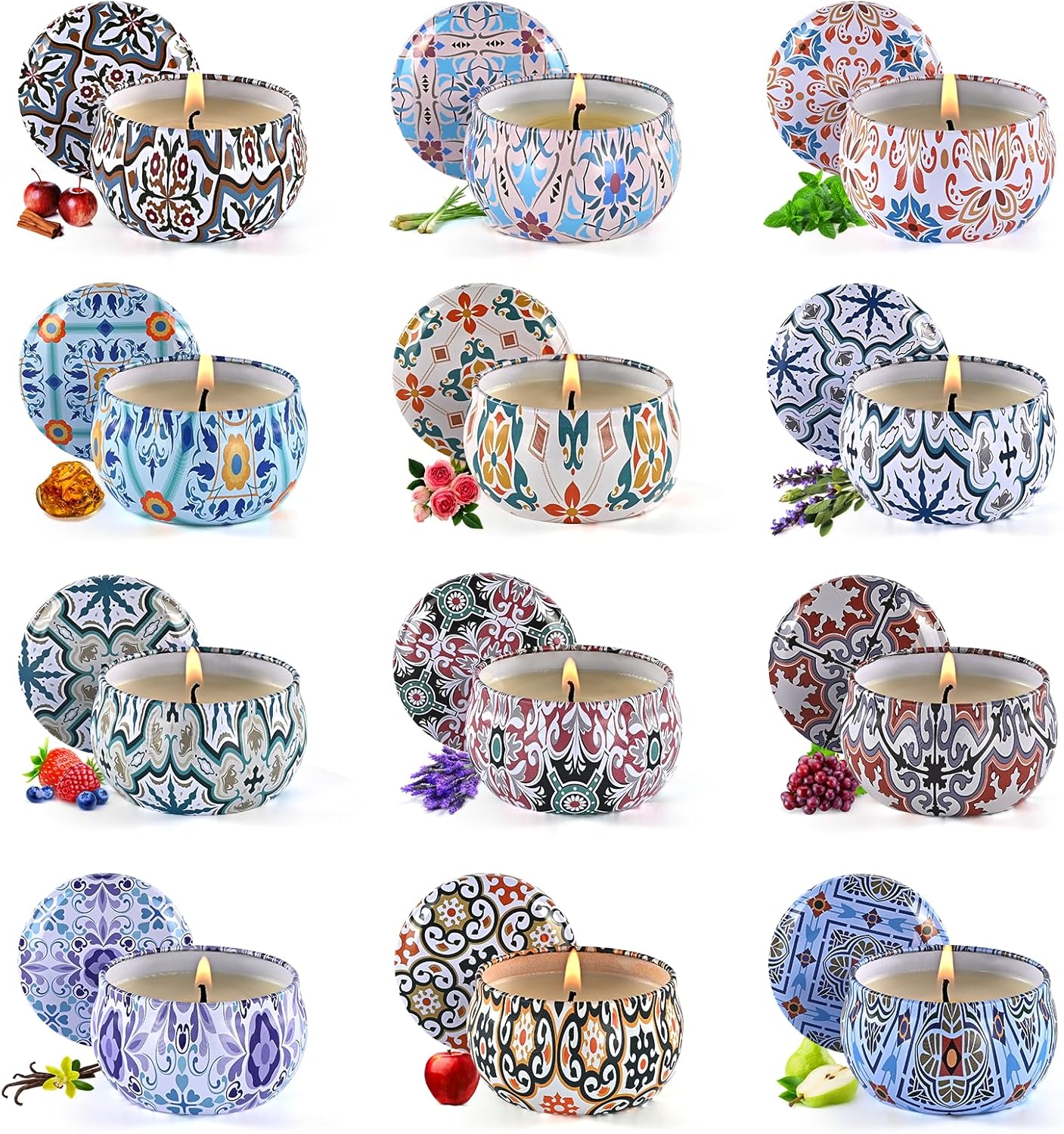 - Long Lasting Time: Scented candles are a powerful tool for people to unwind and recharge, Each soy candle contains 2.5 ounces, The total burn time for 12 scented candles is approximately 240 -300 hours for soothing aromatherapy, You can also trim the candle wick to extend its burning time
