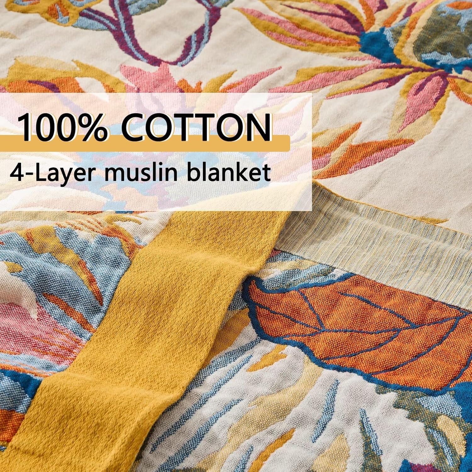 - Ultra Soft : This double side pattern boho bed blankets made from 4 layers of 100% cotton, which has a softer and fuffy touch,warm, skin-friendly and breathable.Measuring 60W"x80L" and weighing 2.2 lbs(1000g)