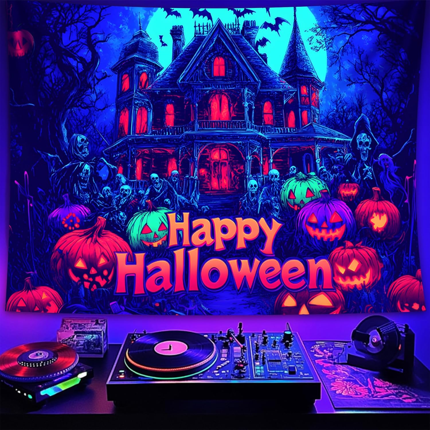 Halloween Tapestry, Blacklight Tapestry for Halloween Party Decor Hanging Tapestries Backdrop Wall Art Poster for Bedroom Dorm 79x59in