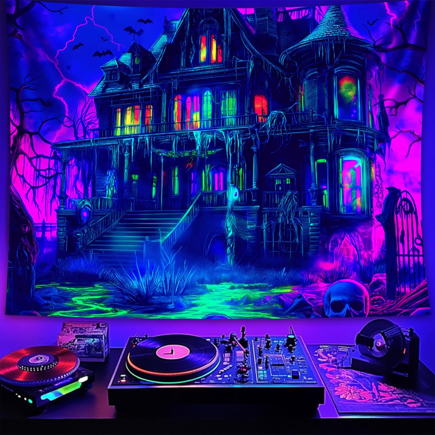 - 【Halloween Tapestry】Turn your room into a haunted haven with this Blacklight Tapestry Halloween—ideal for parties, entryways, and walls.