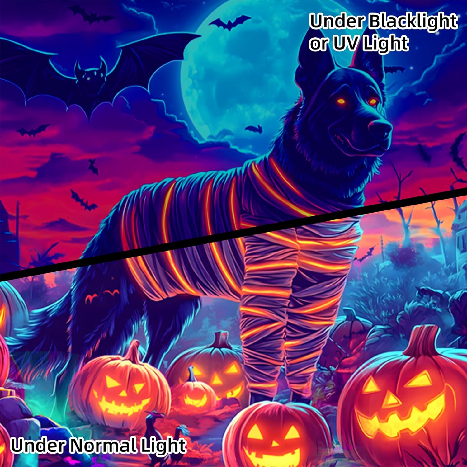 - 【Blacklight Tapestry】Designed for blacklight events, the intricate Halloween art on this blacklight tapestry pops with color in the dark.