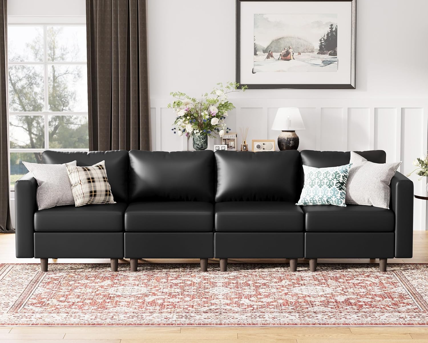 - 💡Effortless-Clean Faux Leather Sofa: Waterproof and stain-resistant faux leather stays spotless. Wipe spills clean in 10 seconds with a damp cloth. The scratch-resistant textured surface feels soft and smooth, maintaining a stylish look even with pets and kids.