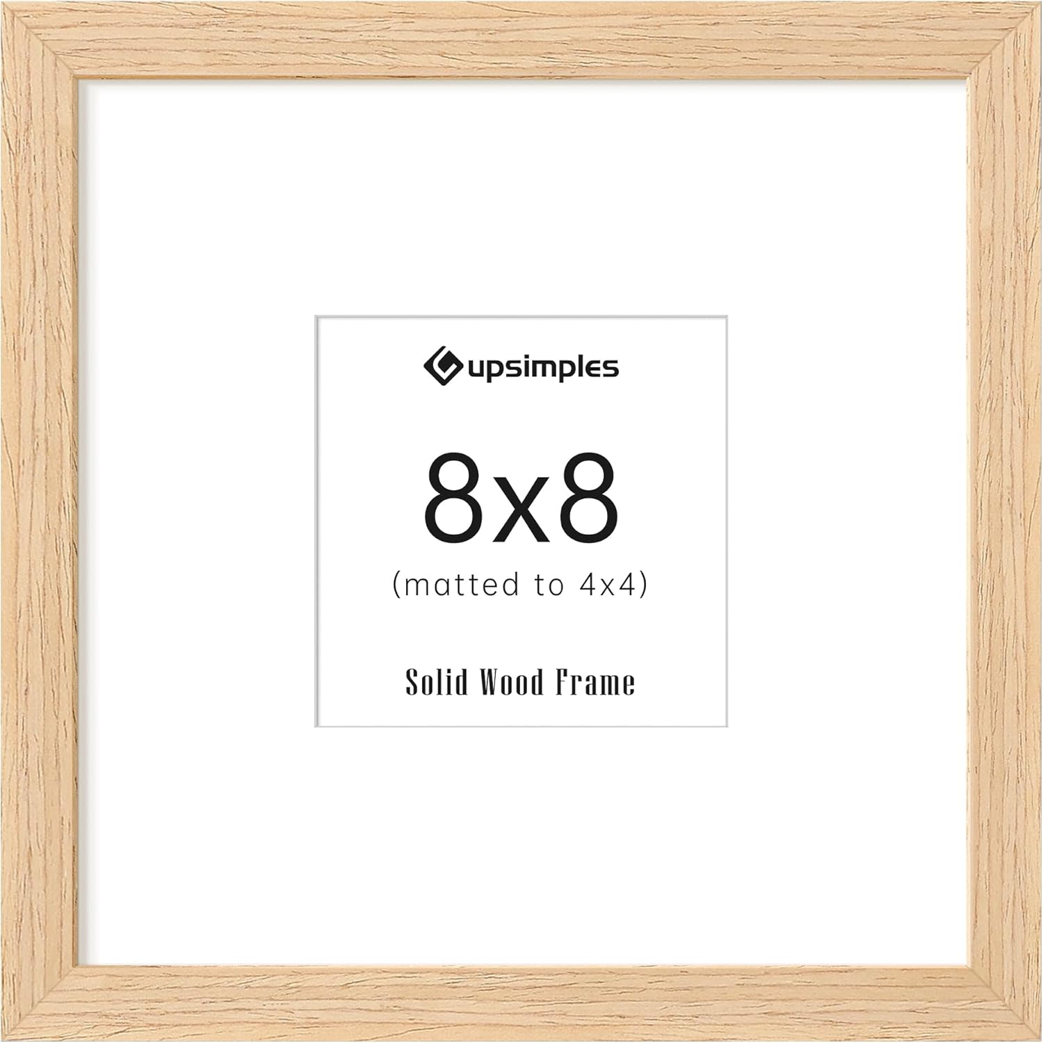 upsimples 8x8 Picture Frames, Natural Solid Wooden Picture Frames, Display 4x4 with Mat or 8 x 8 Without Mat, Wall or Tabletop, 1 Pack, Natural