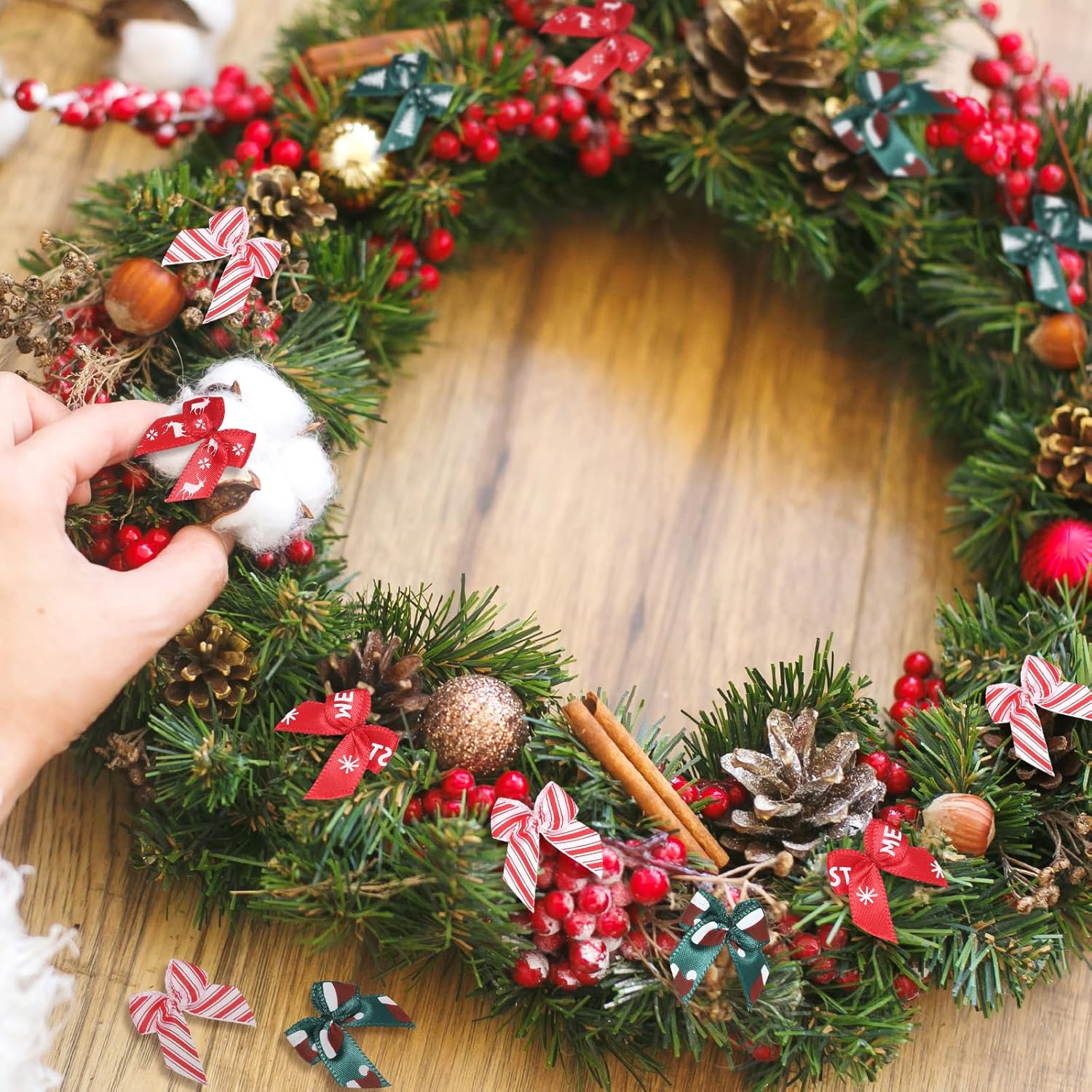Syhood 150 Pcs Christmas Mini Bow Tiny Twist Tie Bow Handmade Craft Ribbon for DIY Sewing Party Decor(Red and Green,Patterned)