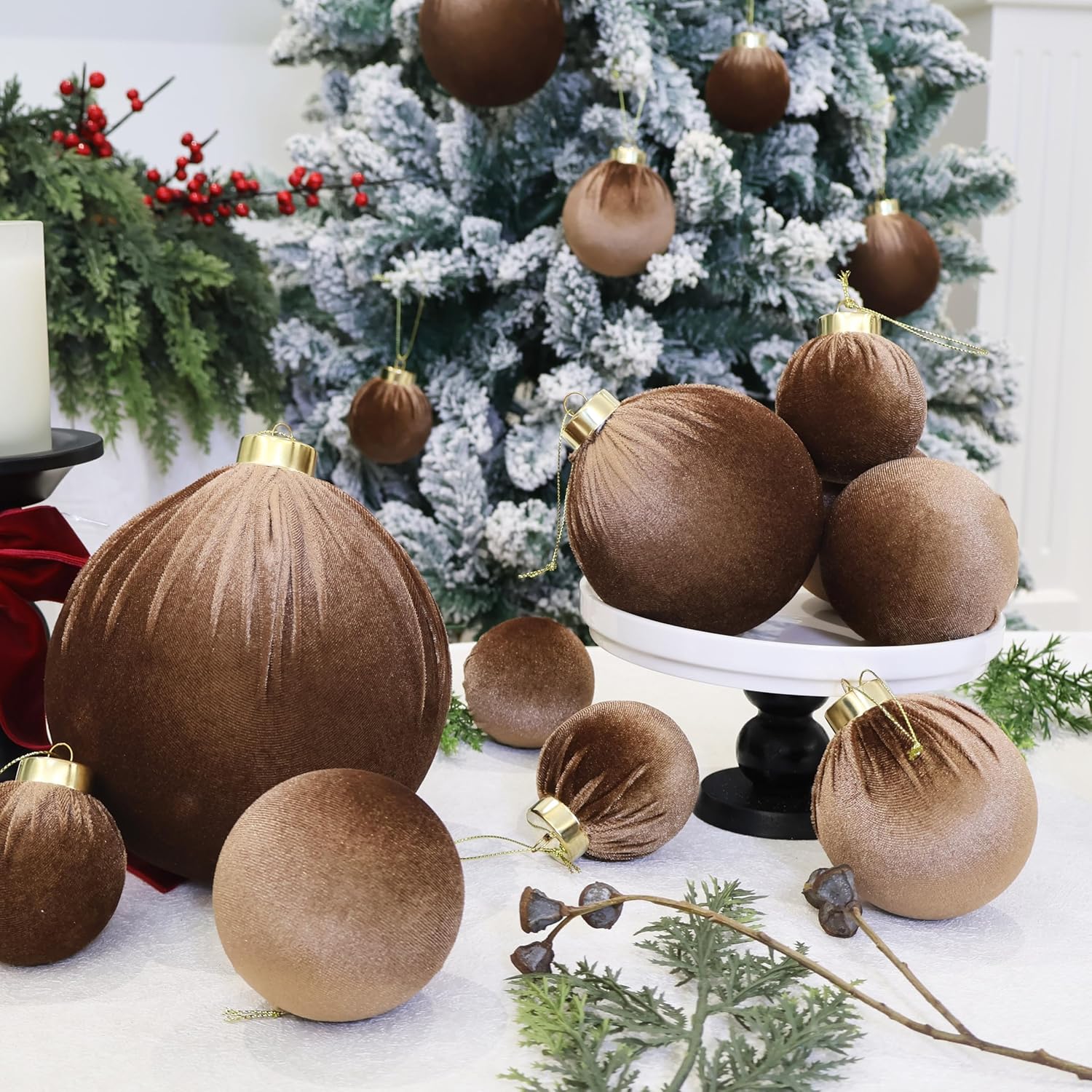 - Flocked Design: the Christmas ornaments balls enjoy flocking texture,scattering these velvet Christmas hanging balls can create a retro and beautiful effect, transforming your home into a distinctive and elegant winter scene